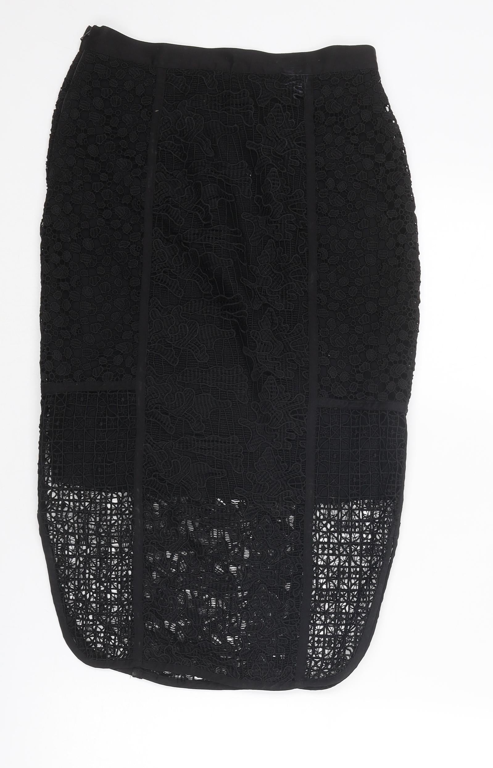 H&M Womens Black Geometric Polyester A-Line Skirt Size 6 Zip