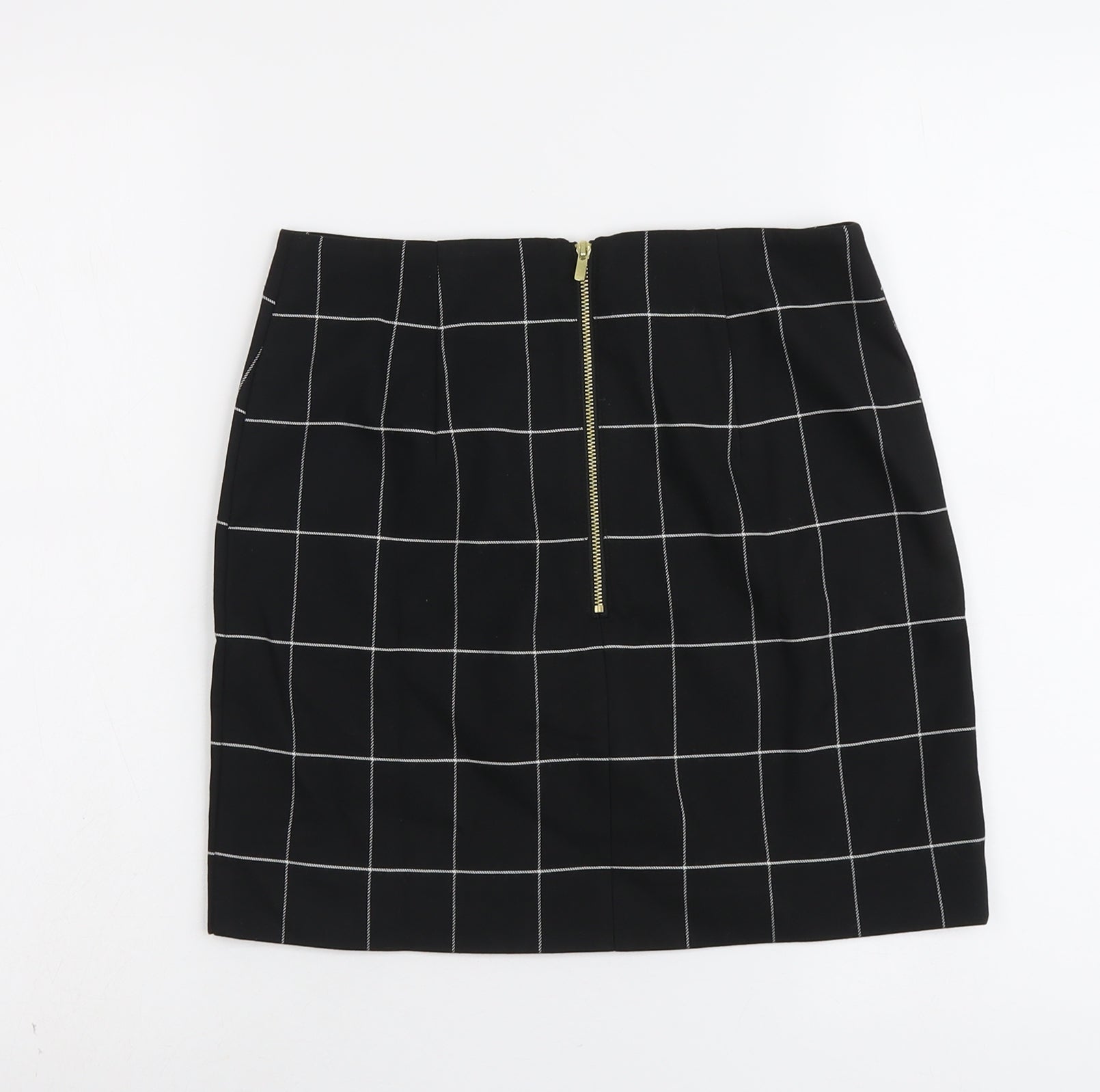 H&M Womens Black Geometric Polyester A-Line Skirt Size 8 Zip