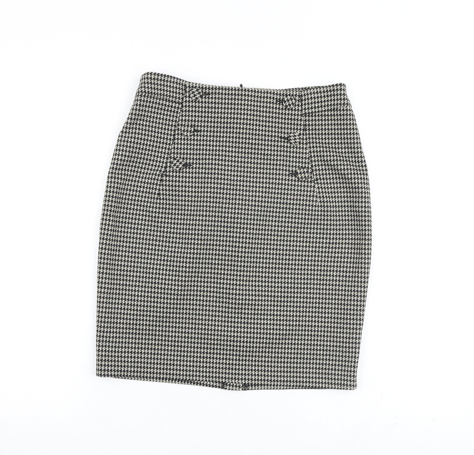 H&M Womens Black Geometric Polyester A-Line Skirt Size 8 Zip