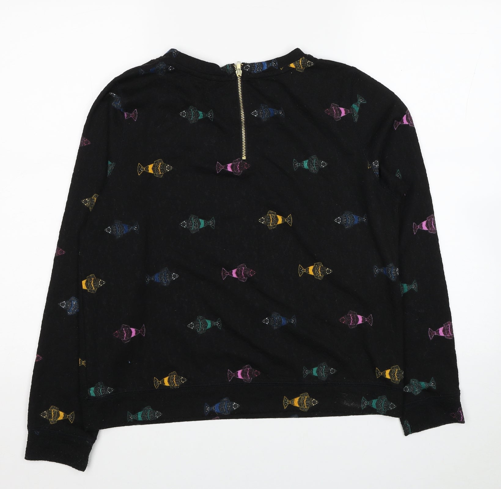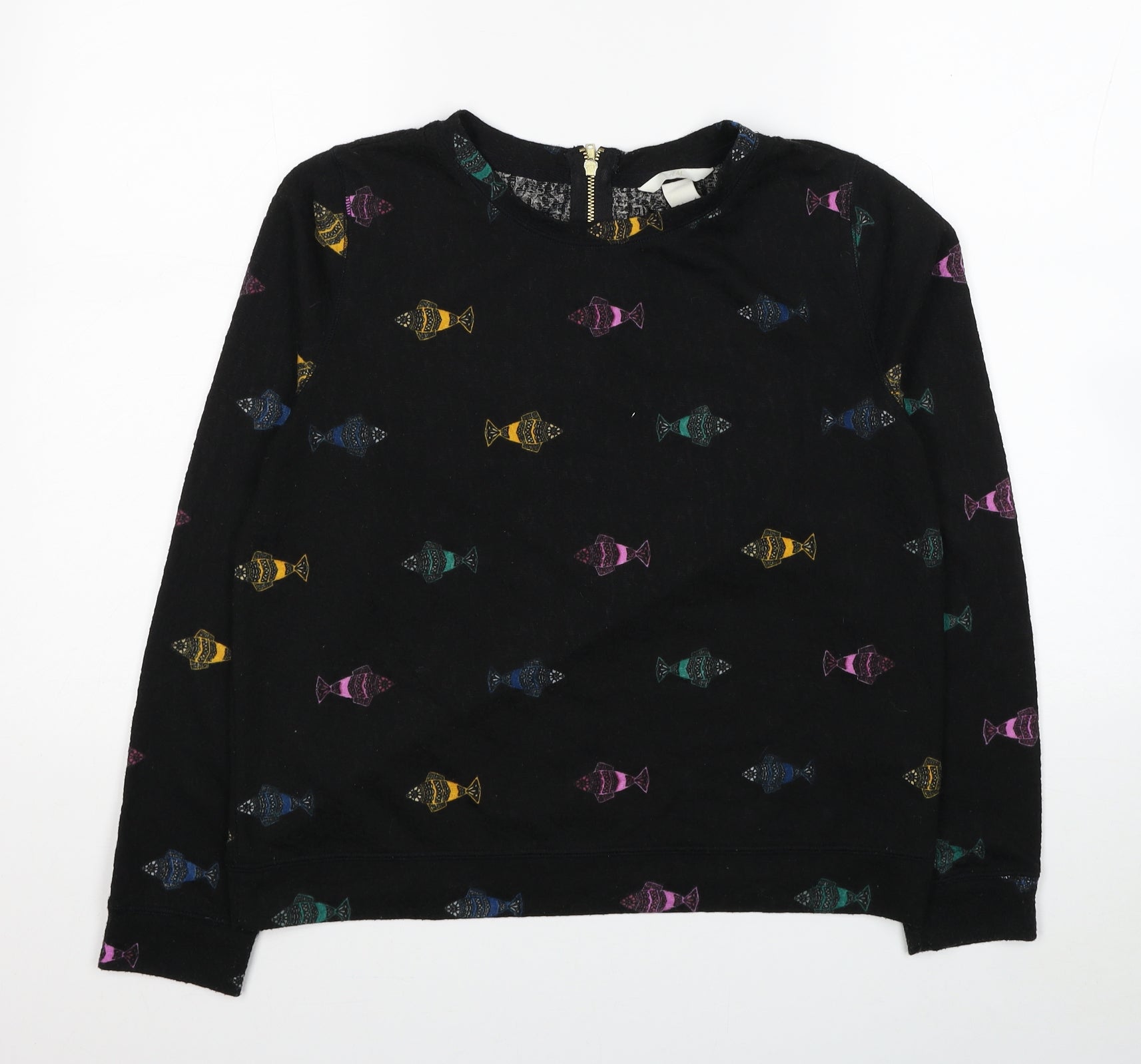 H&M Womens Black Geometric Polyester Pullover Sweatshirt Size S Zip - Fish Print