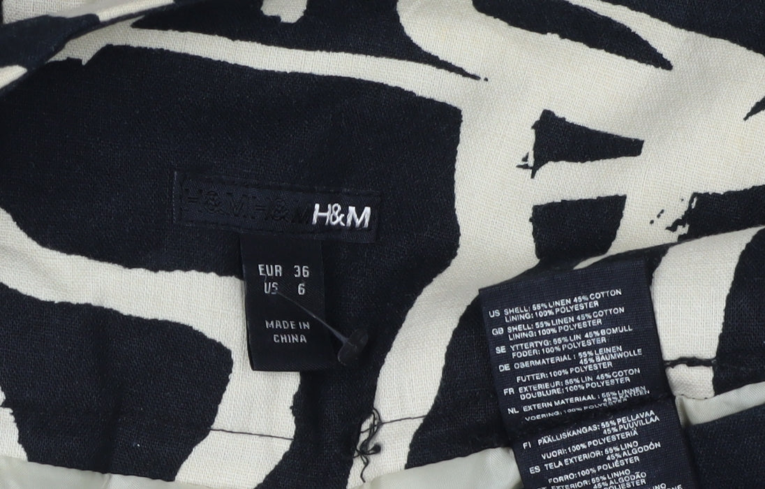 H&M Women's Black Geometric Print Pleated Skirt, Size 8