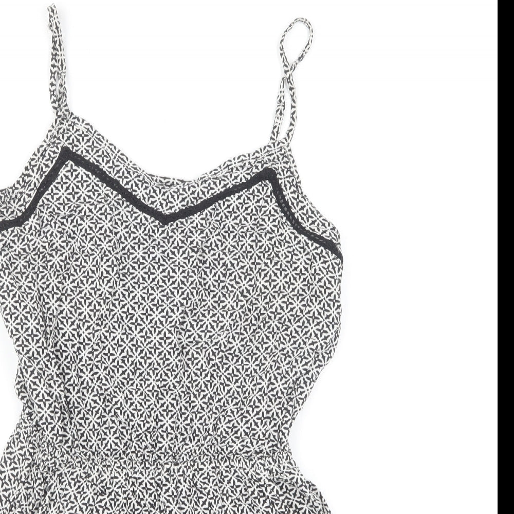 H&M Womens Black Geometric Viscose Playsuit One-Piece Size 6 Pullover