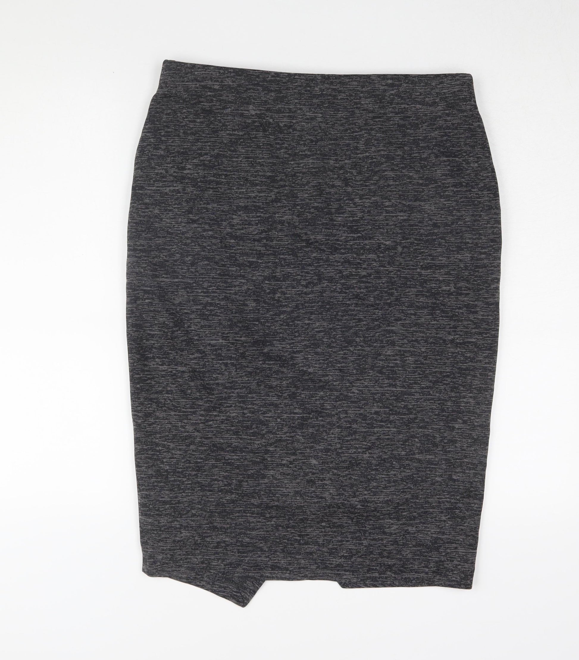 H&M Women's Black Midi Pencil Skirt, Size L - Elegant Knit