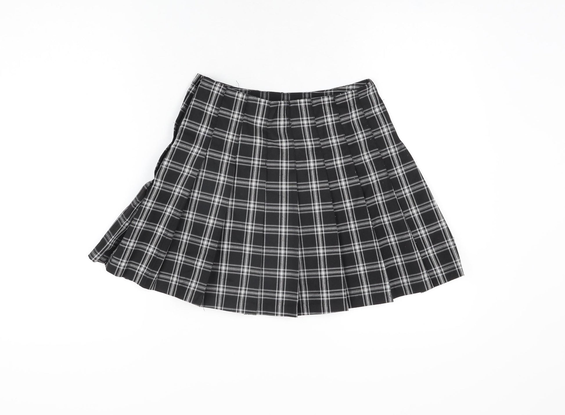 H&M Womens Black Plaid Polyester Mini Skirt Size 4 Zip