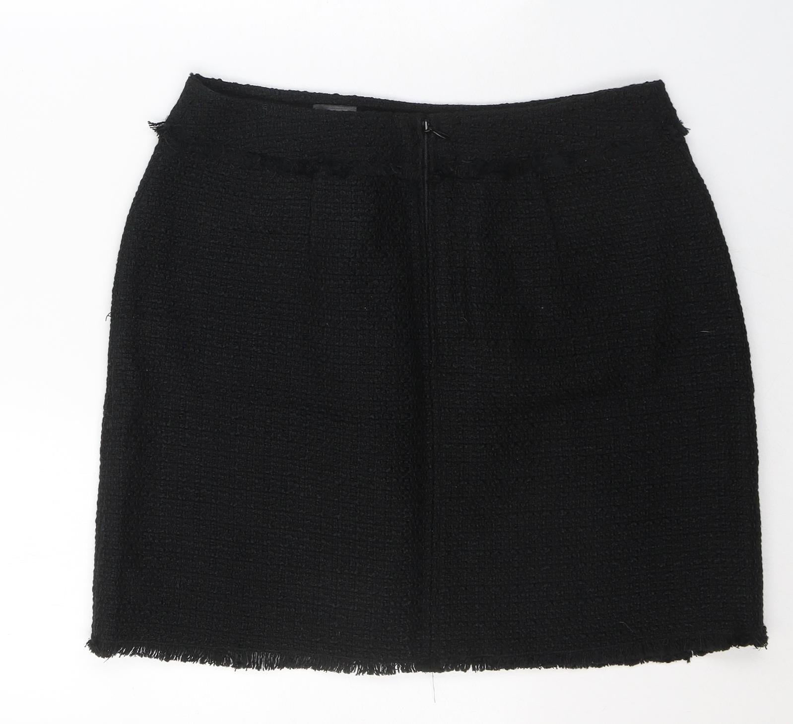 H&M Womens Black Polyester A-Line Skirt Size 32 in Zip