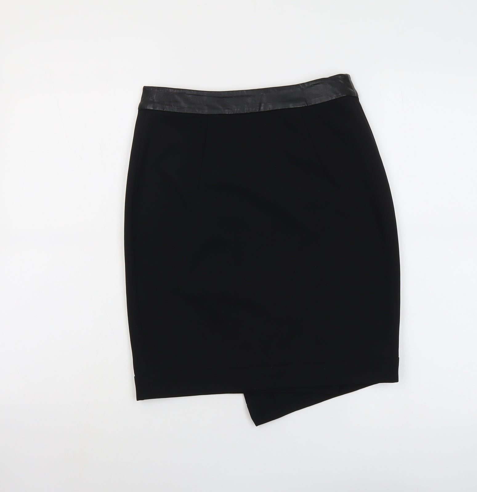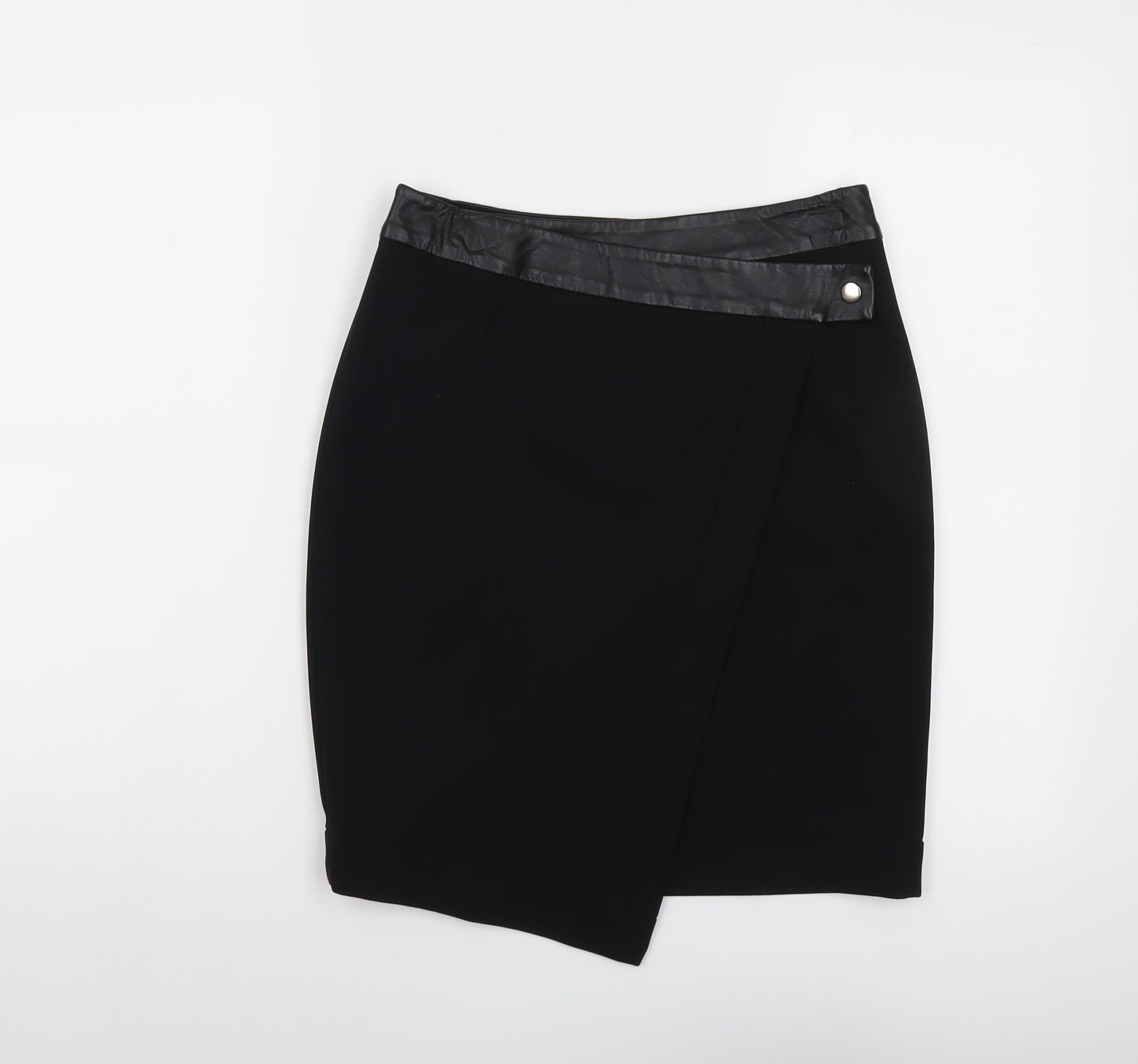 H&M Womens Black Polyester A-Line Skirt Size 6 Snap