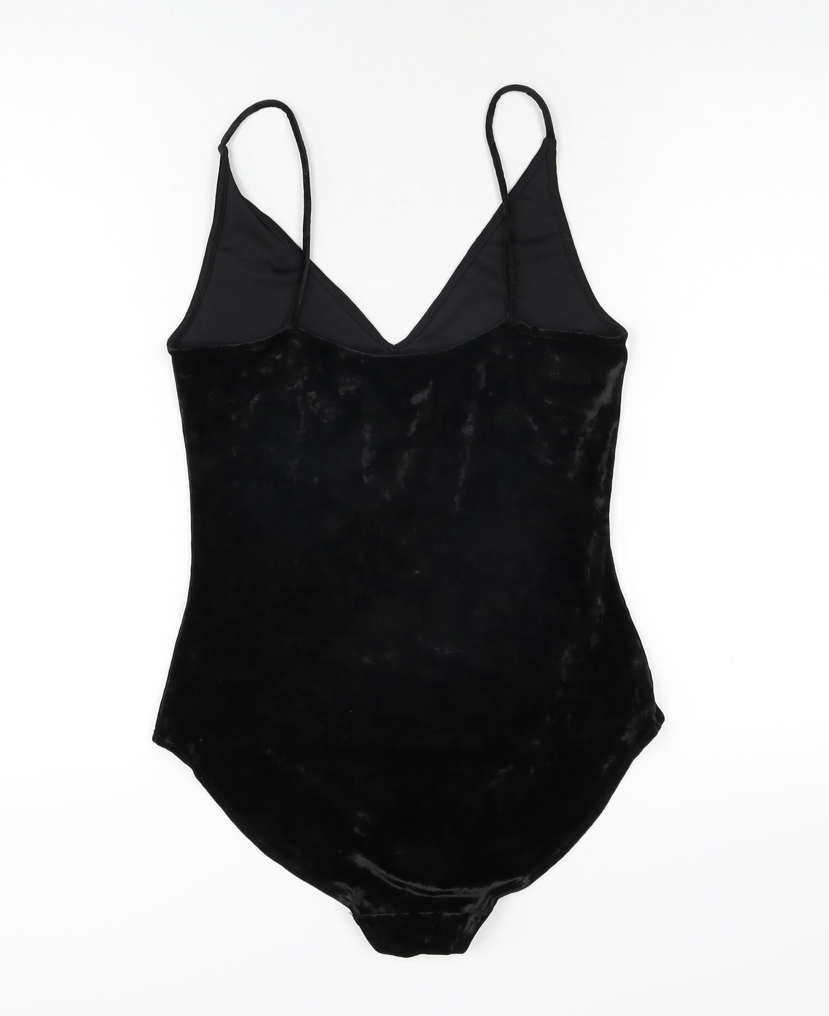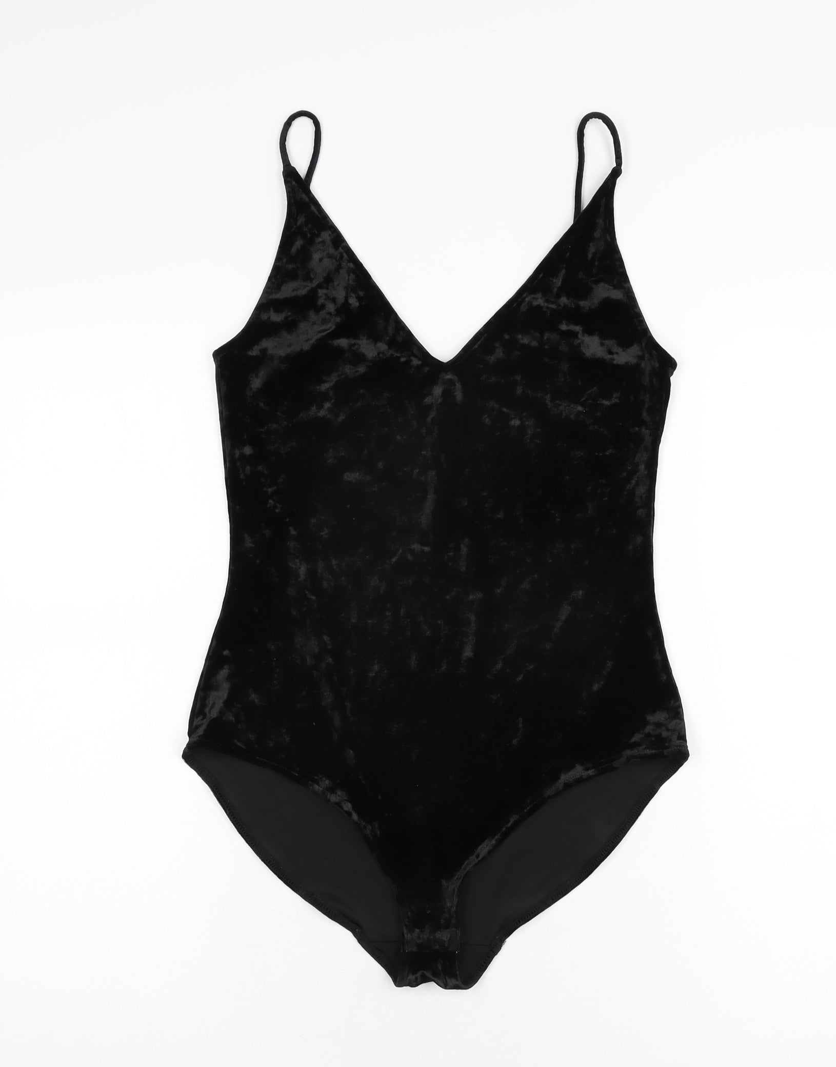 H&M Womens Black Polyester Bodysuit One-Piece Size S Snap