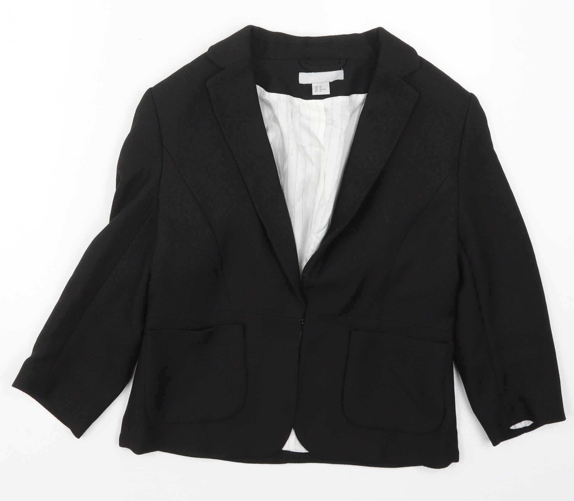 H&M Womens Black Polyester Jacket Blazer Size 12