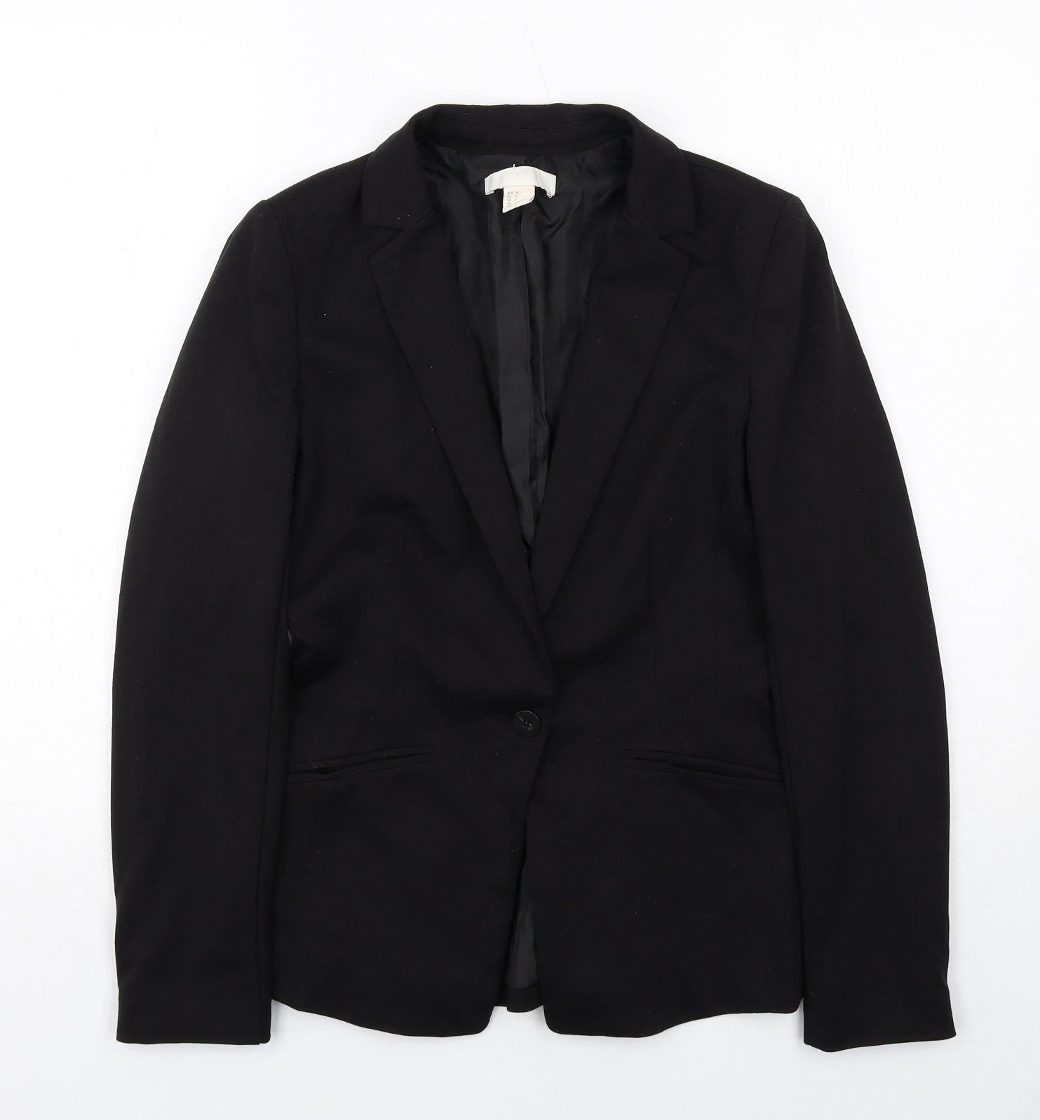 H&M Womens Black Polyester Jacket Suit Jacket Size 8