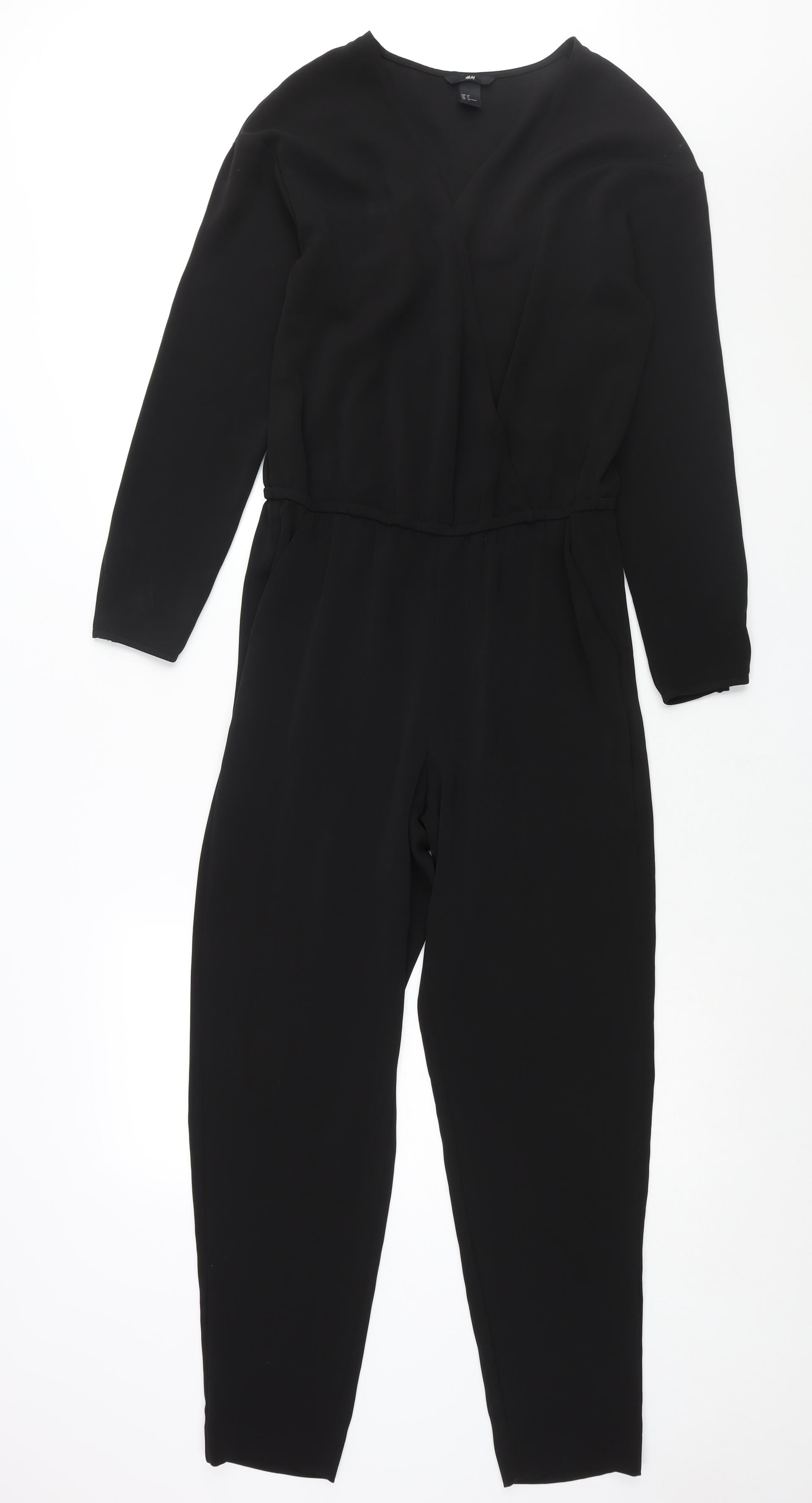 H&M Womens Black Polyester Jumpsuit One-Piece Size 8 L28 in Button