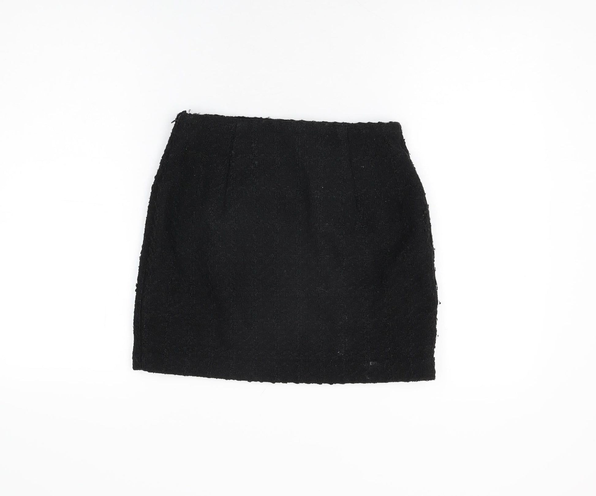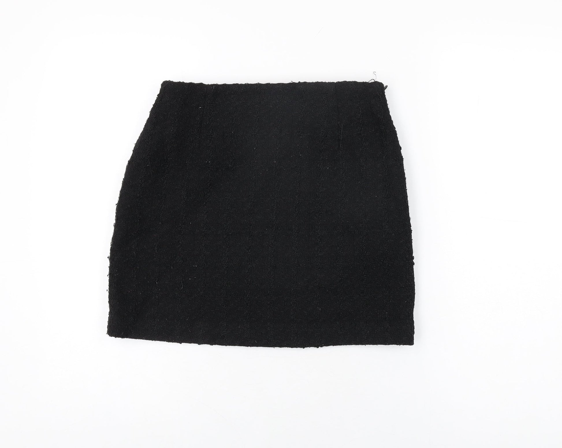 H&M Womens Black Polyester Mini Skirt Size 8 Zip