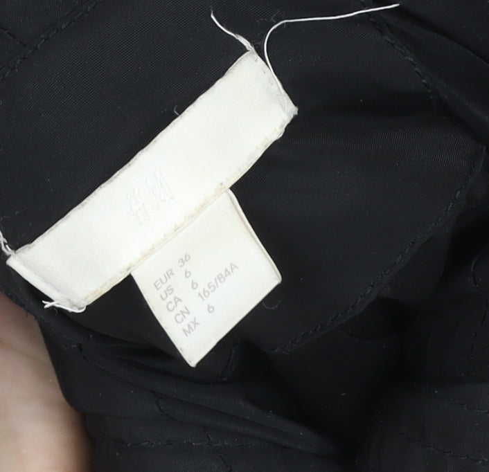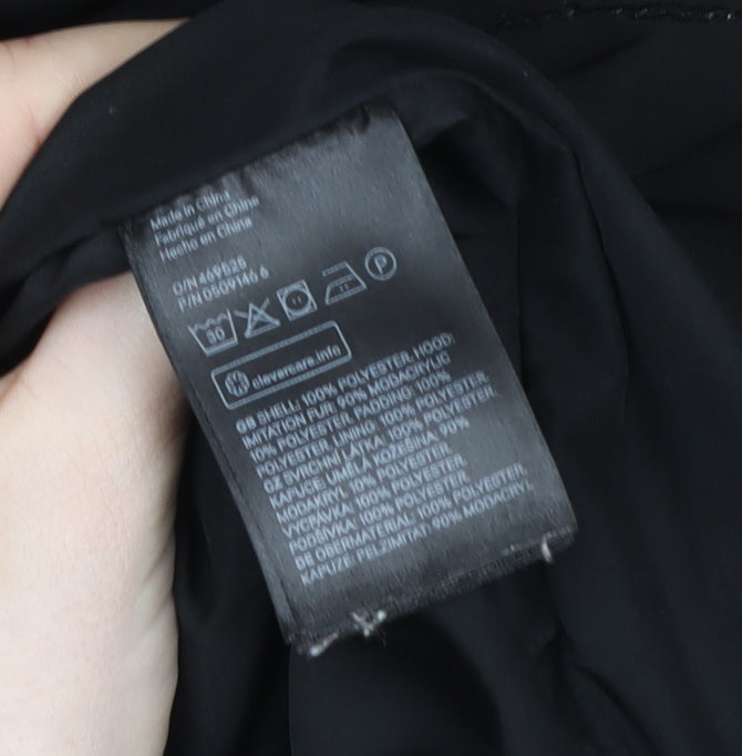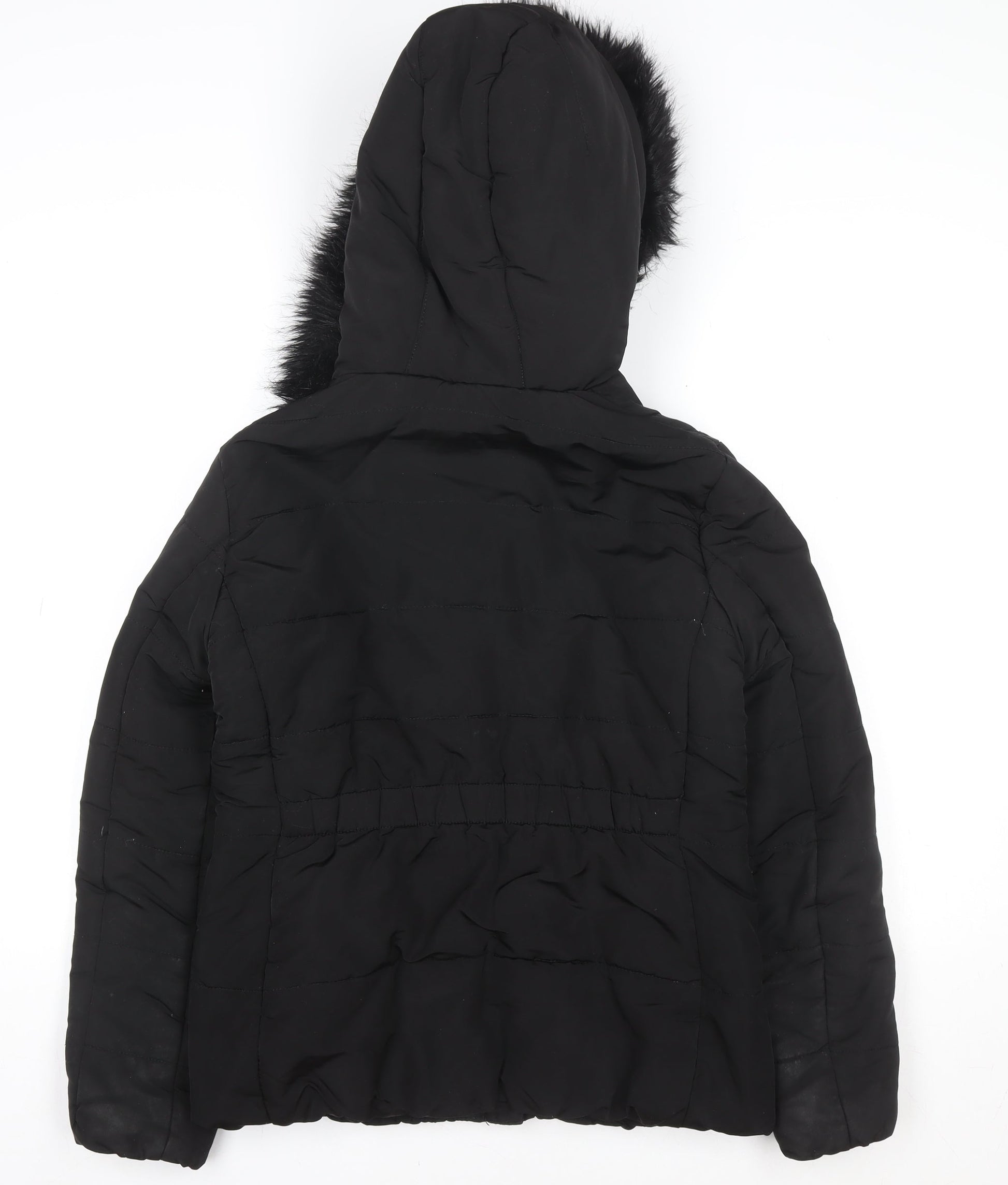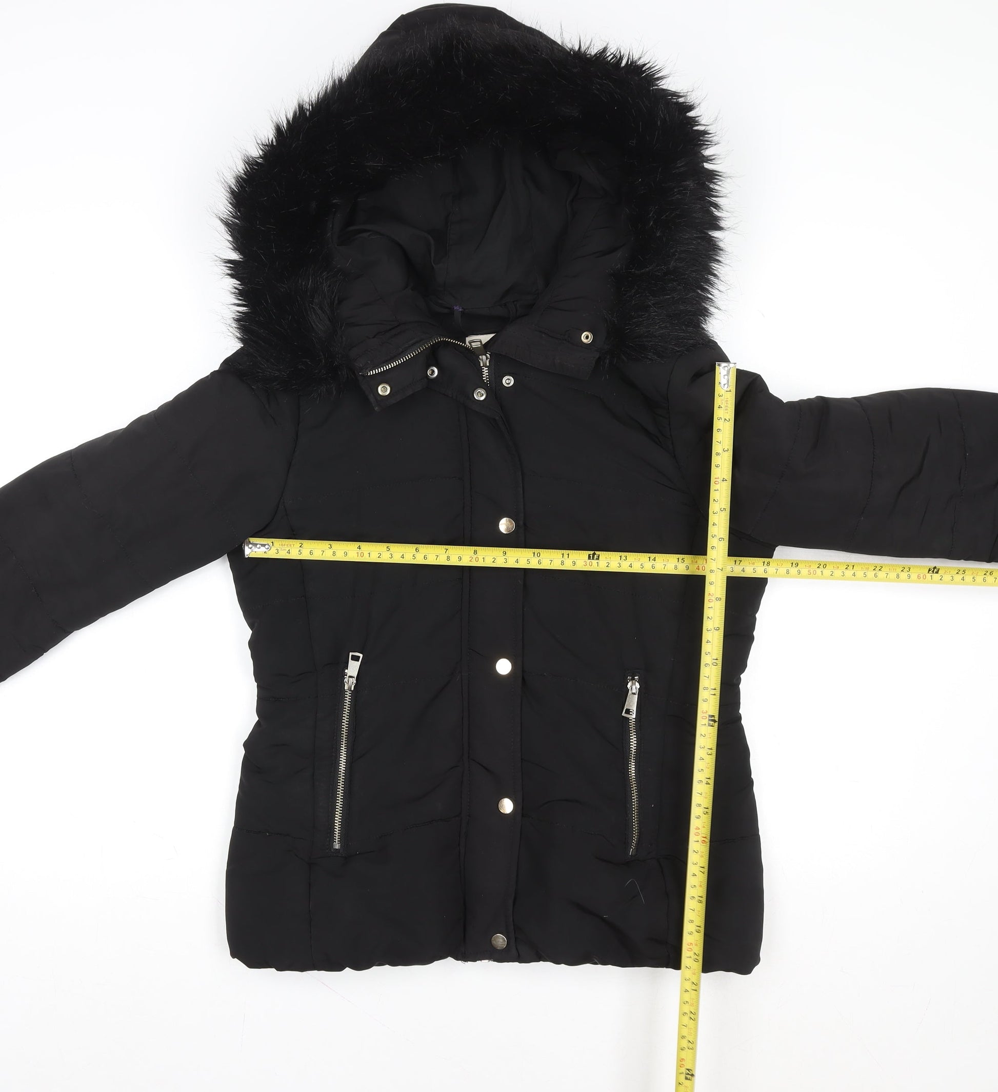 H&M Womens Black Puffer Jacket Size 8 Faux Fur Hooded Winter Coat