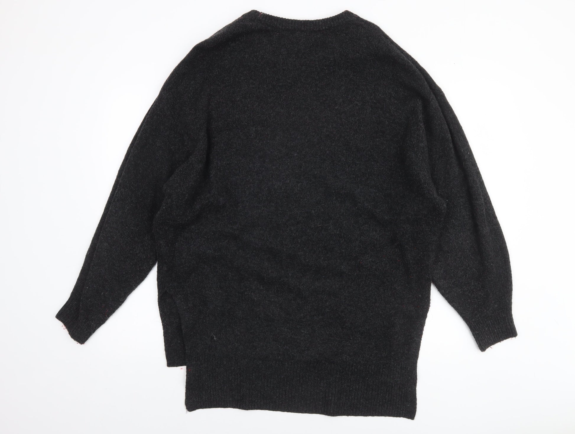 H&M Women's Black Relaxed Fit Crew Neck Knit Jumper Size S