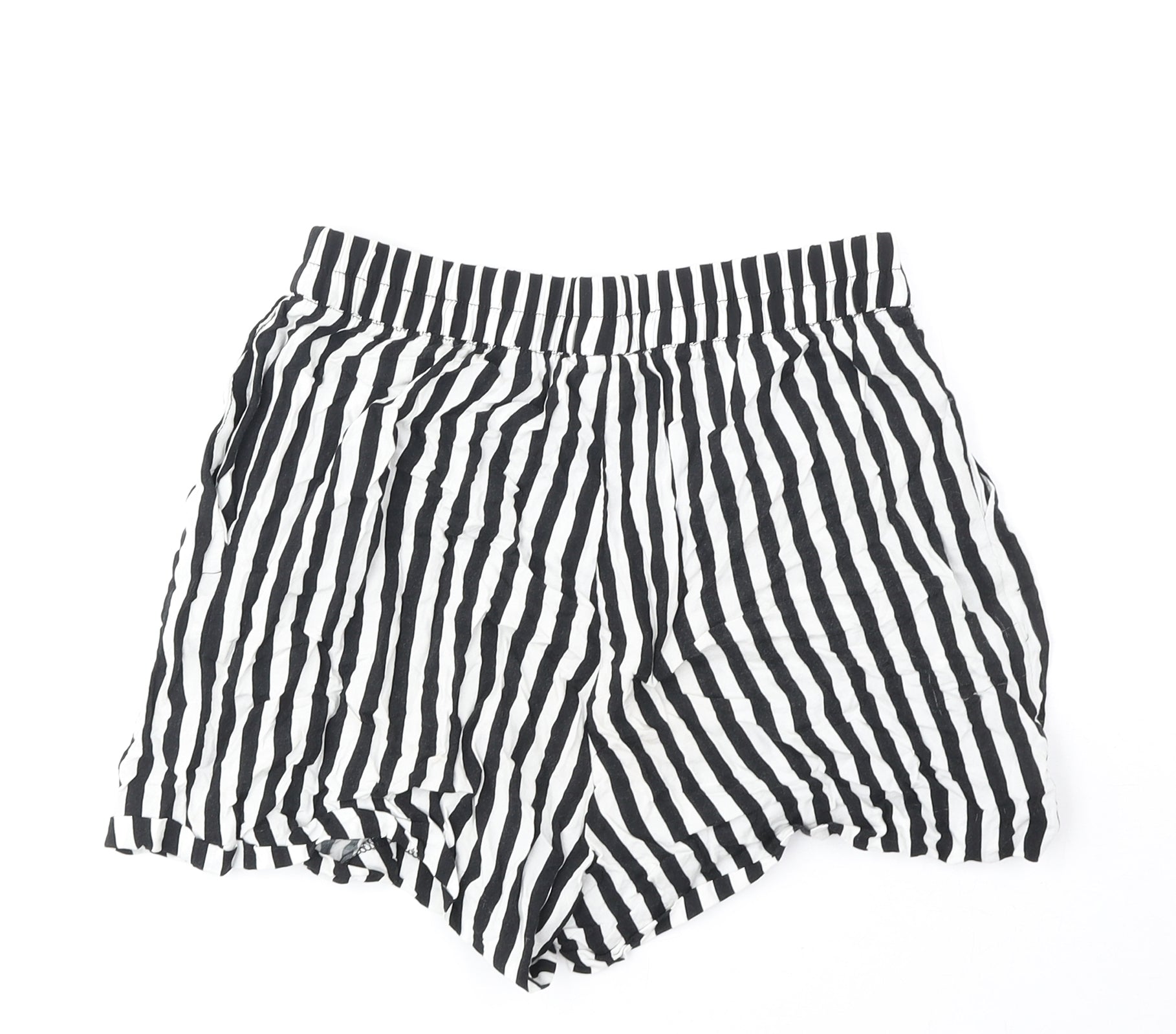 H&M Womens Black Striped Viscose Basic Shorts Size 6 Regular
