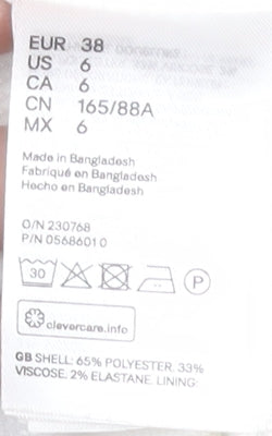 - Material Breakdown: 65% Polyester 33% Viscose 2% Elastane