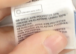 - Material Breakdown: 65% Polyester 33% Viscose 4% Elastane