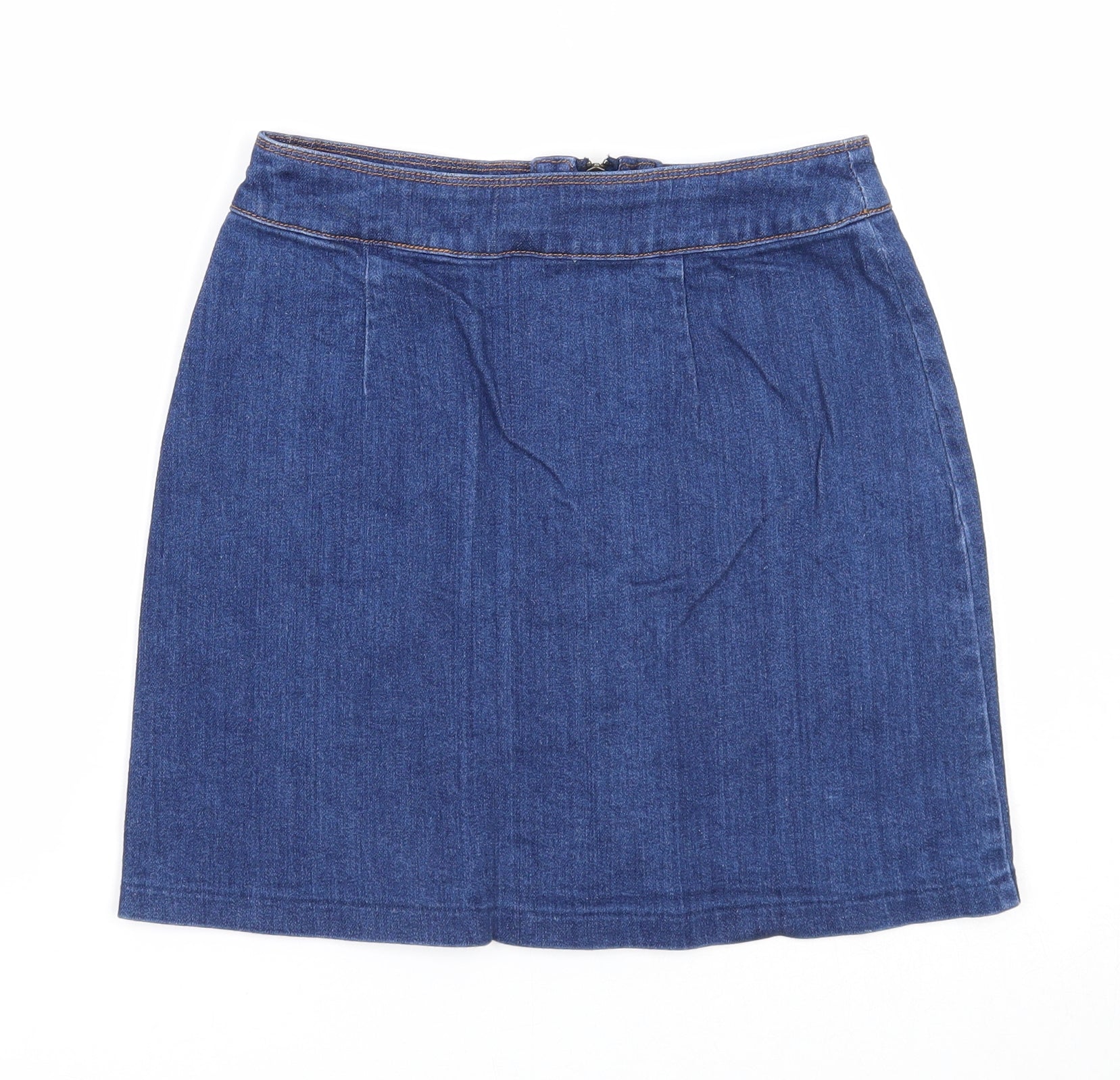 H&M Womens Blue Cotton A-Line Skirt Size 6 Zip