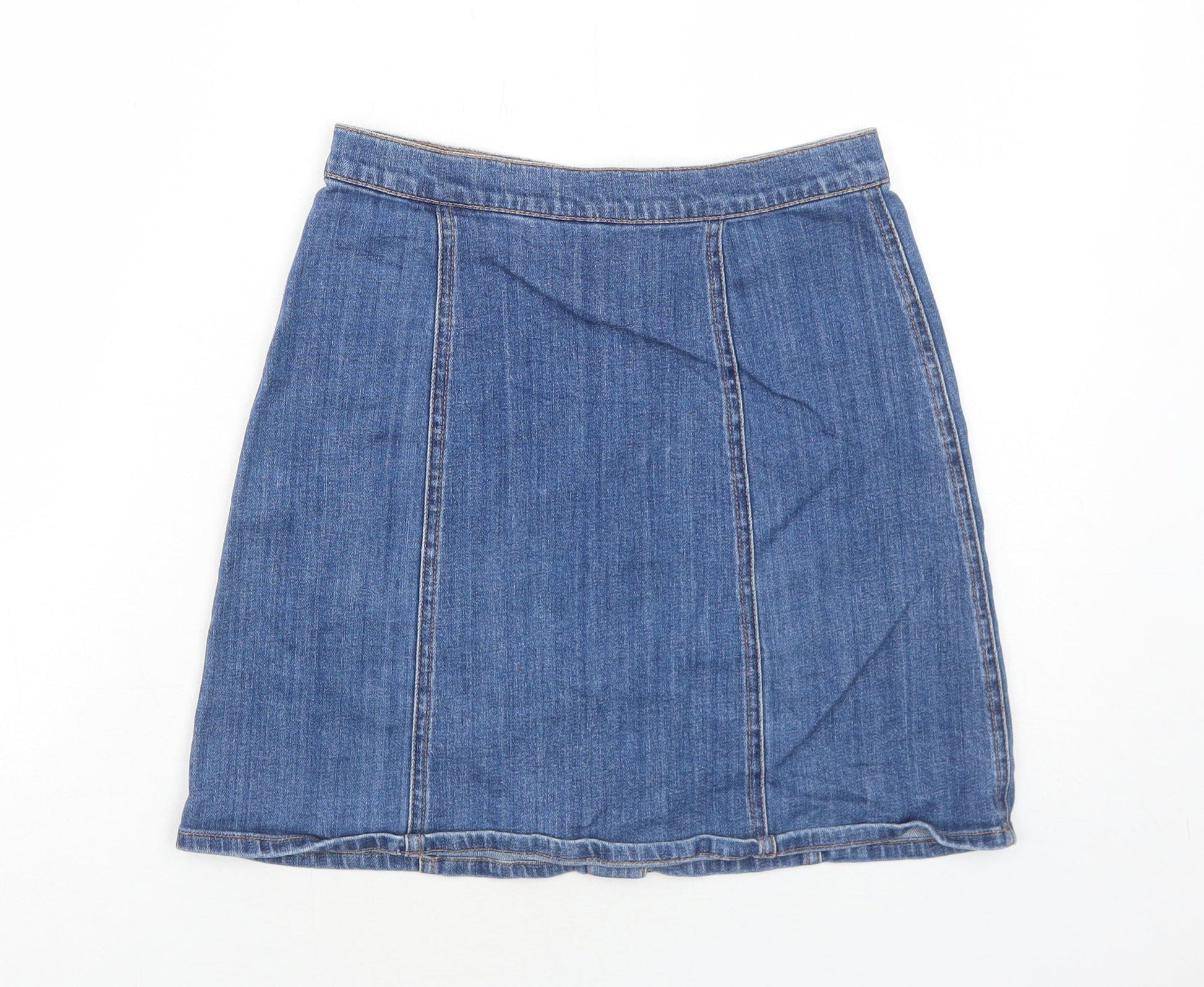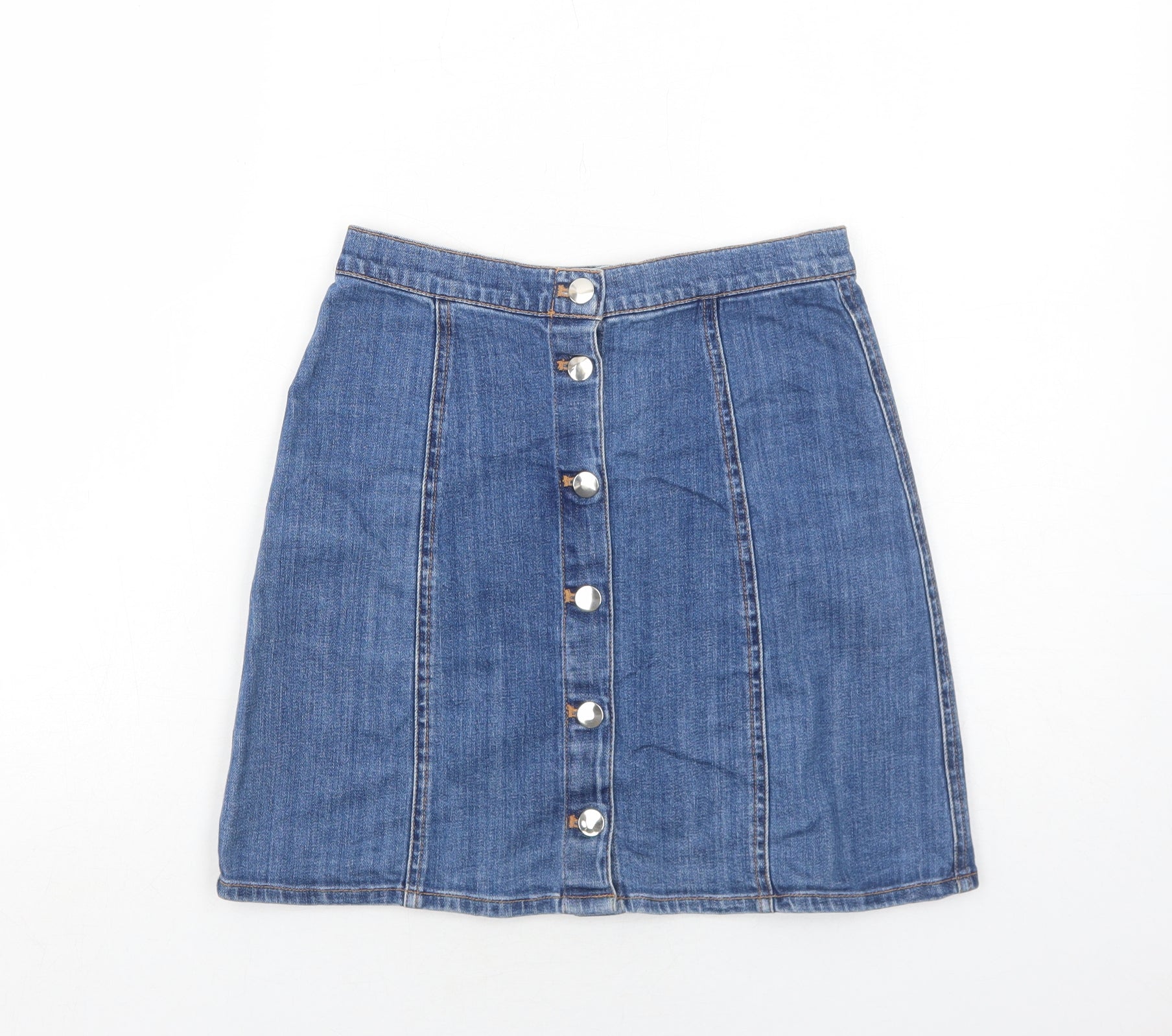H&M Womens Blue Cotton A-Line Skirt Size 8 Button