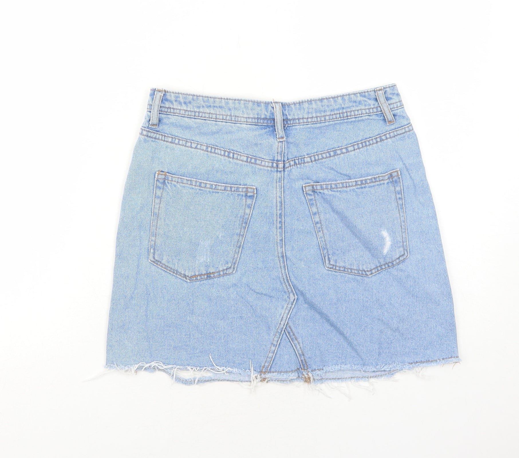 H&M Womens Blue Cotton A-Line Skirt Size 8 Zip
