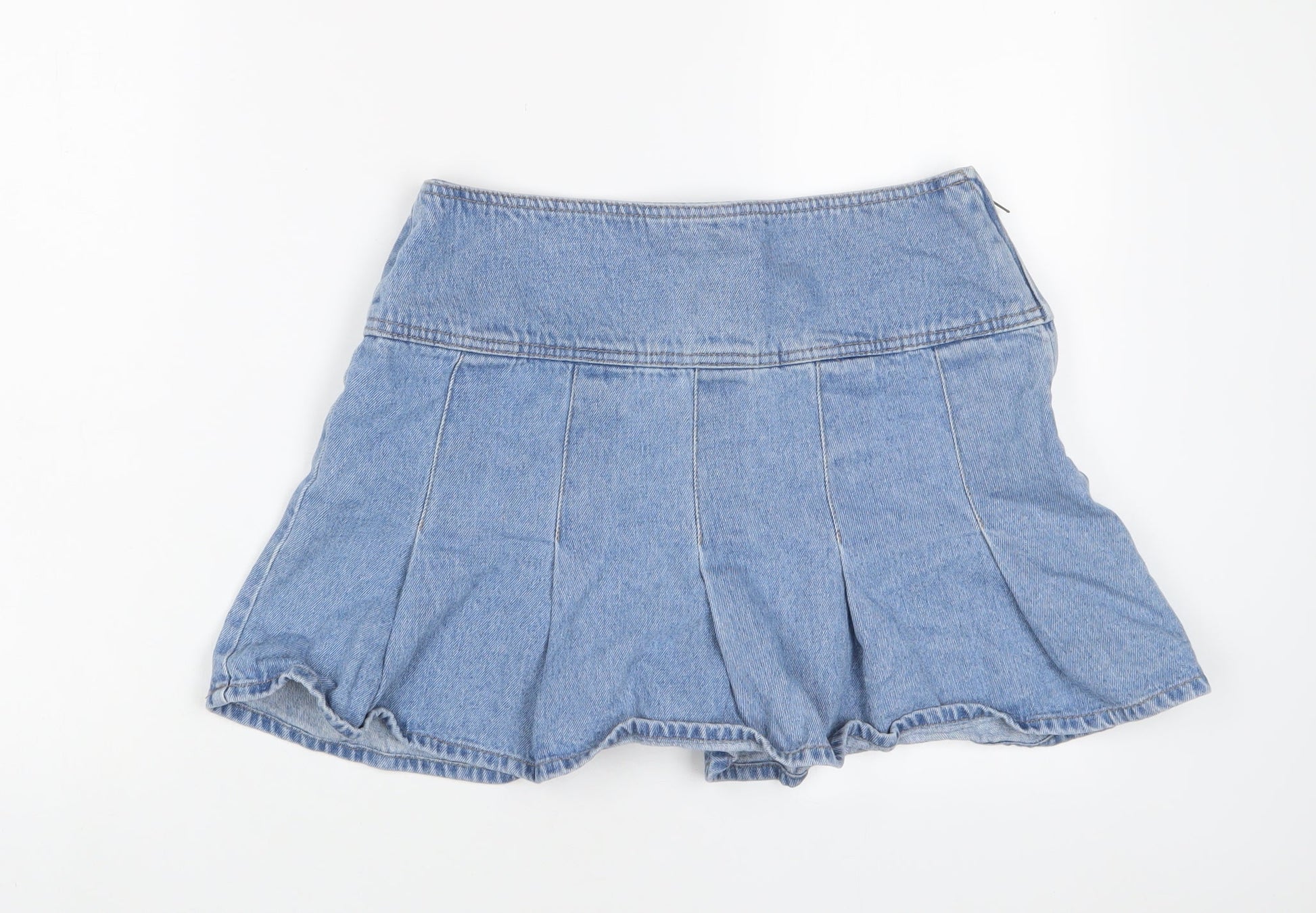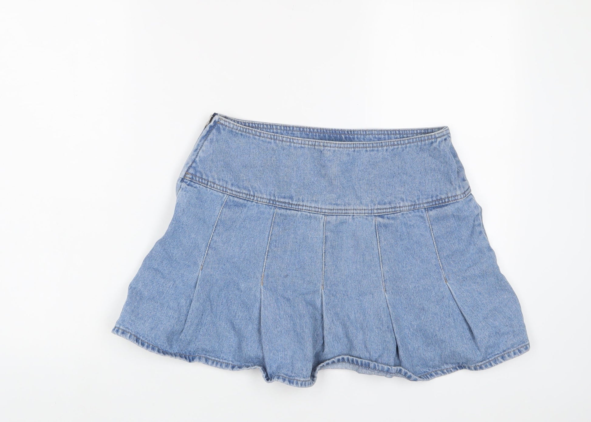 H&M Womens Blue Cotton A-Line Skirt Size S Zip - Pleated