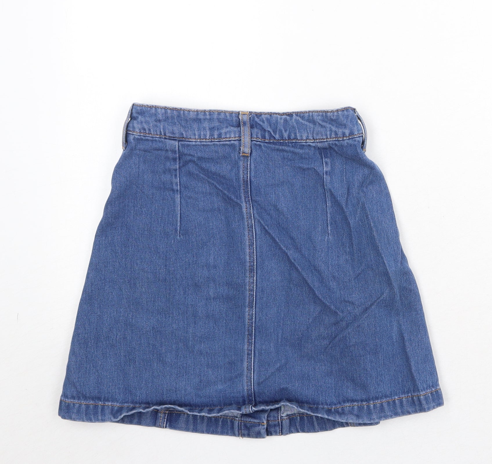 H&M Womens Blue Cotton Mini Skirt Size 6 Button