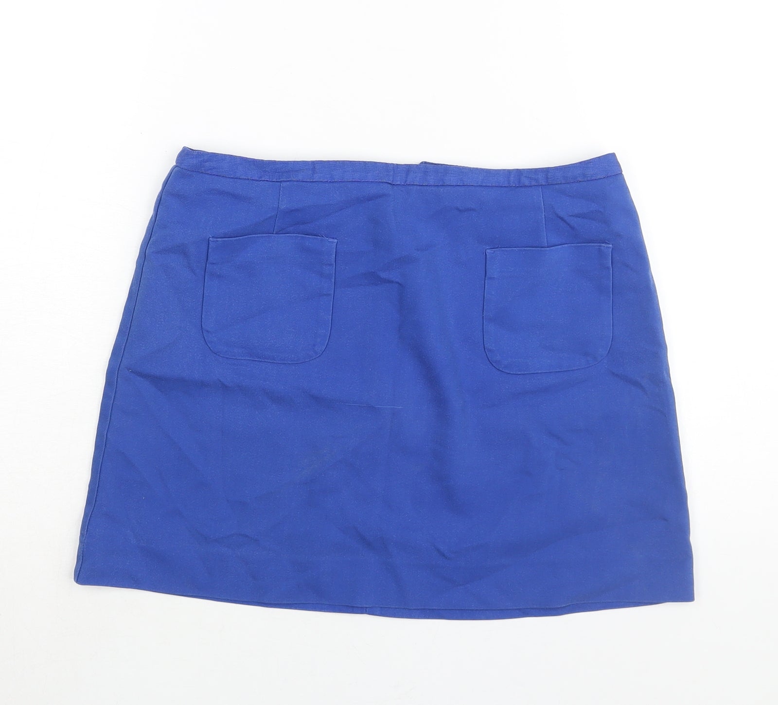 H&M Womens Blue Cotton Mini Skirt Size 8 Zip