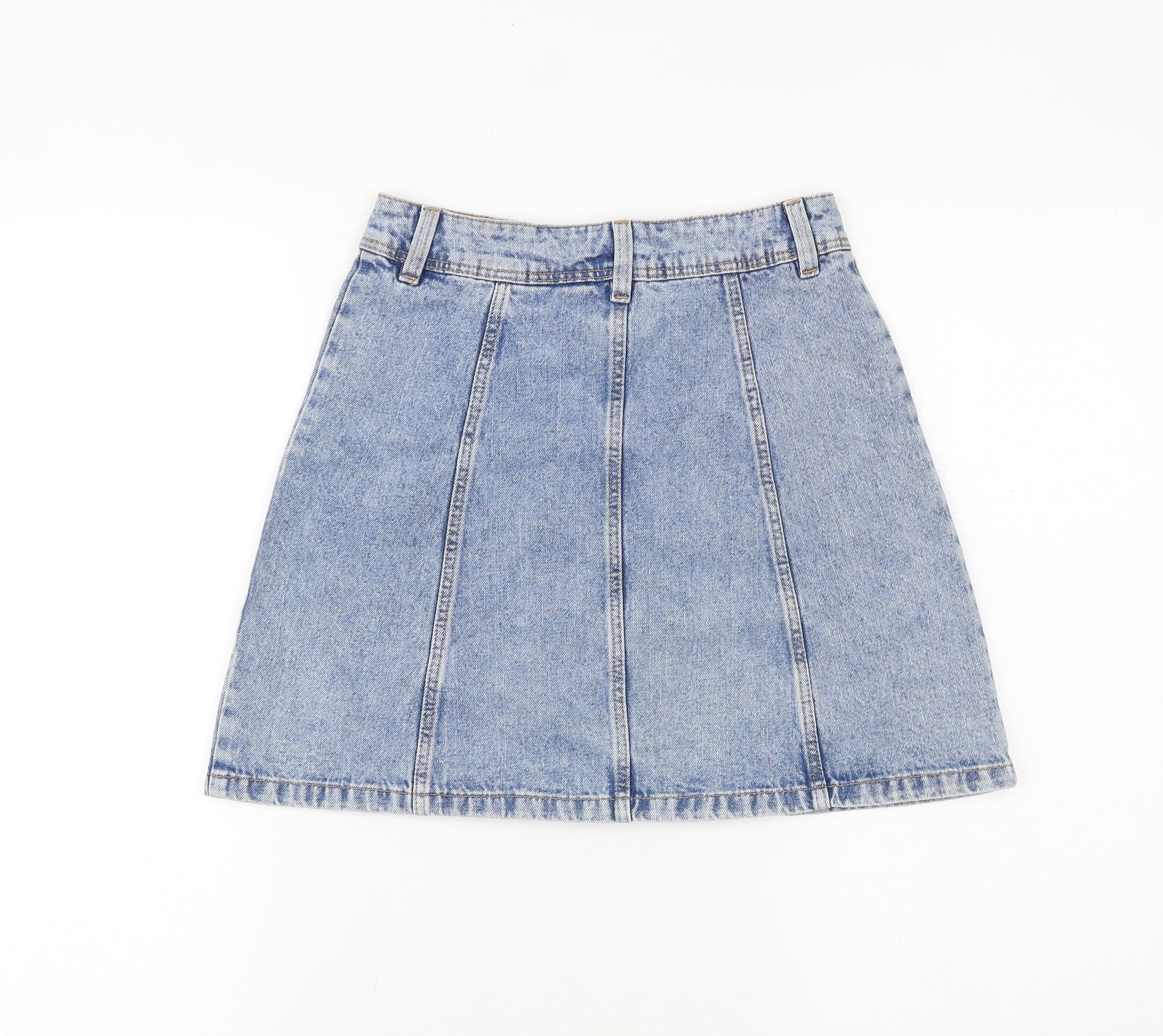 H&M Womens Blue Cotton Straight & Pencil Skirt Size 4 Button