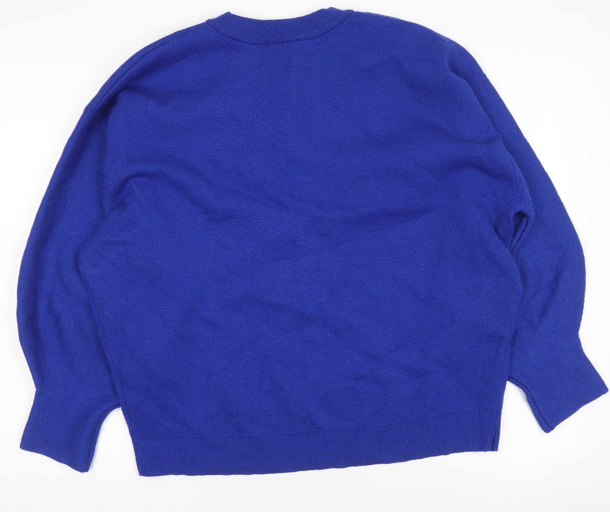 H&M Women's Blue Crew Neck Long Sleeve Pullover Jumper Size 12