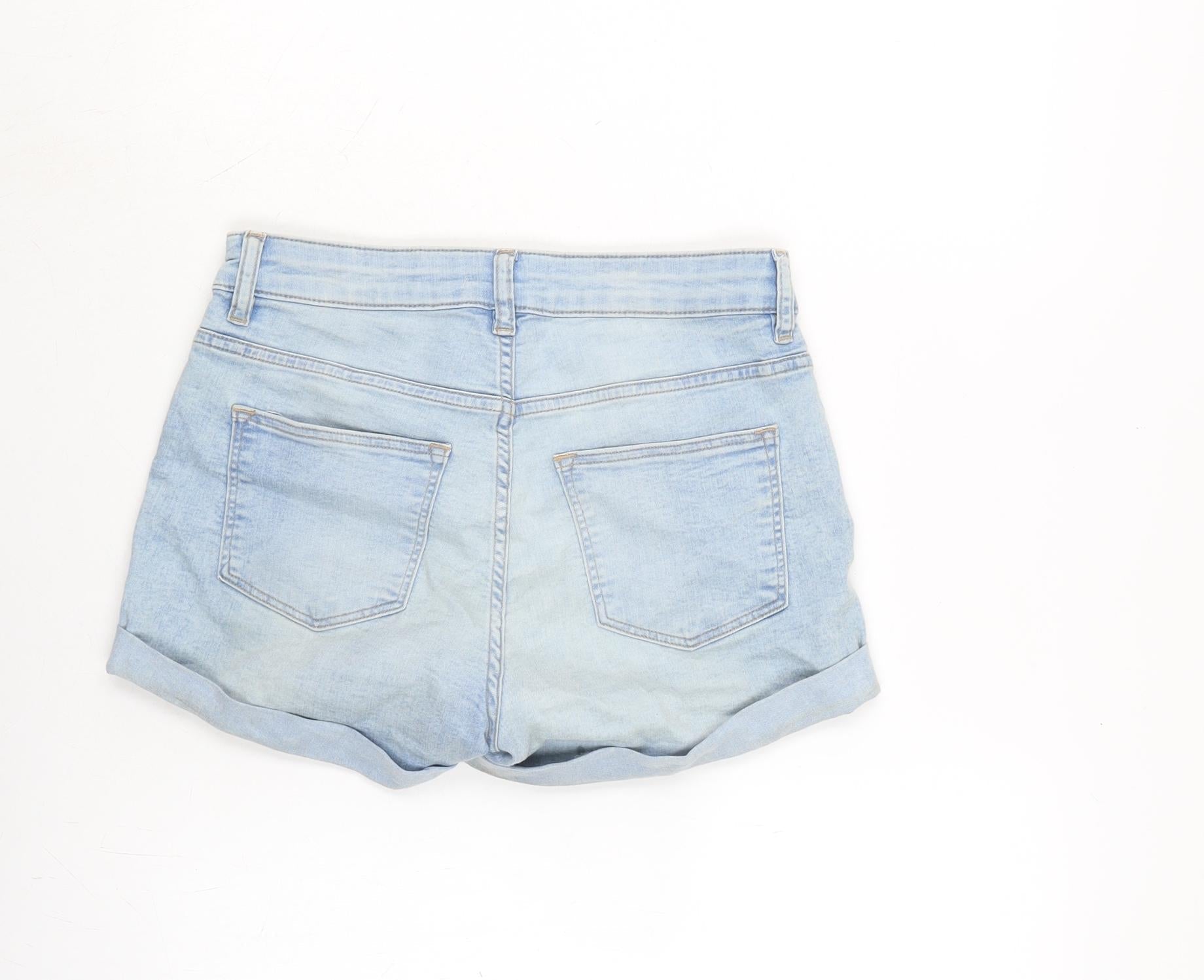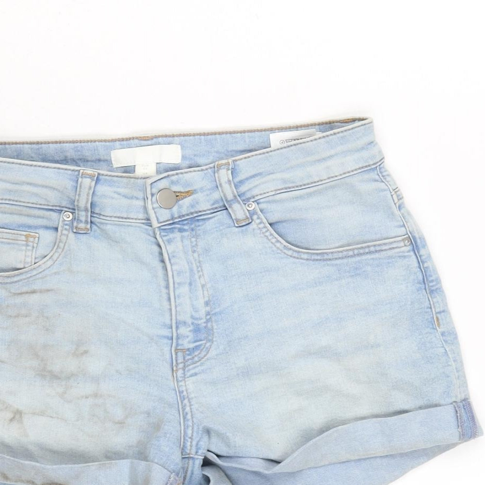 H&M Womens Blue Houndstooth Cotton Boyfriend Shorts Size 8 Regular Zip