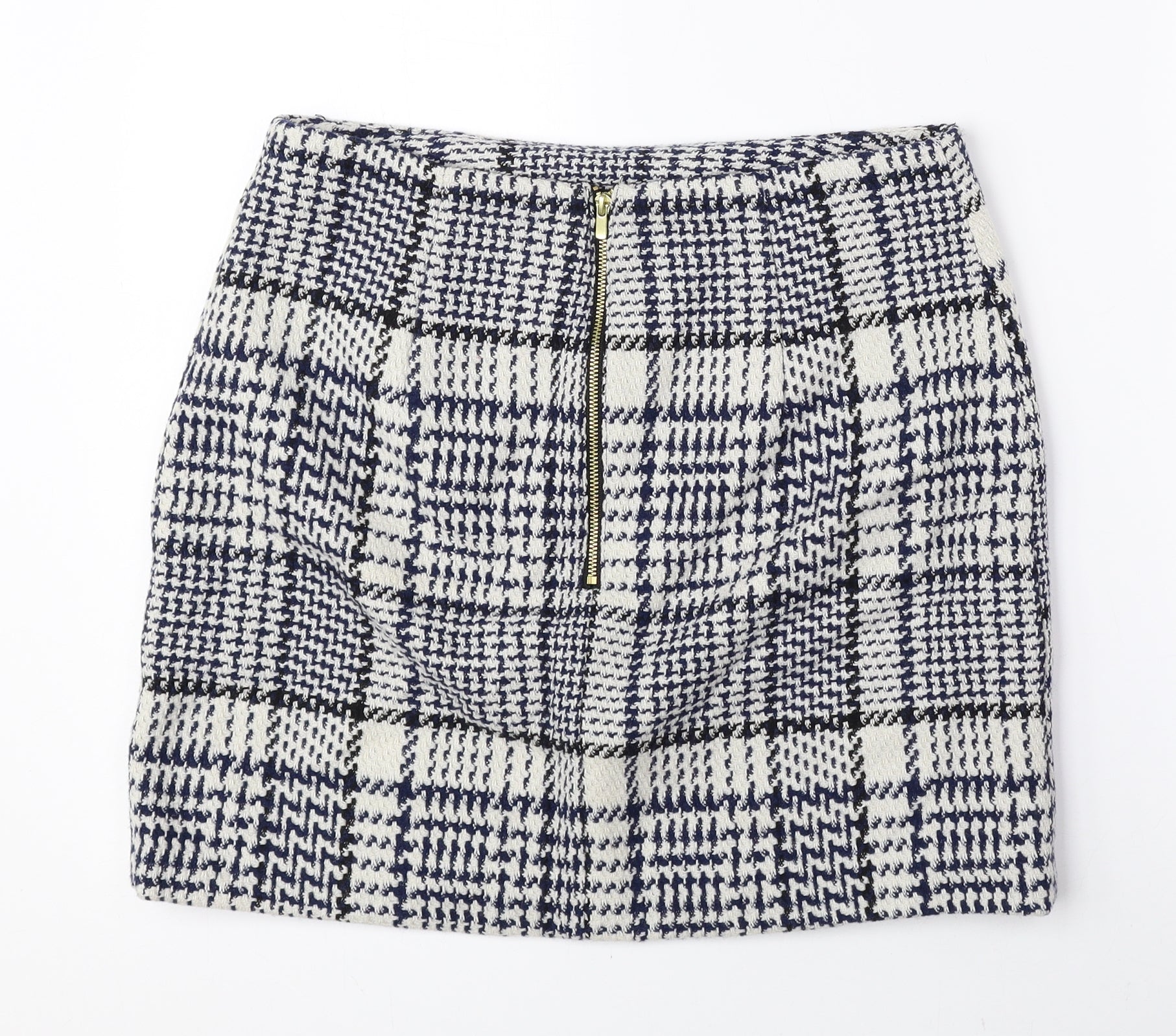 H&M Womens Blue Plaid Polyester Mini Skirt Size 6 Zip