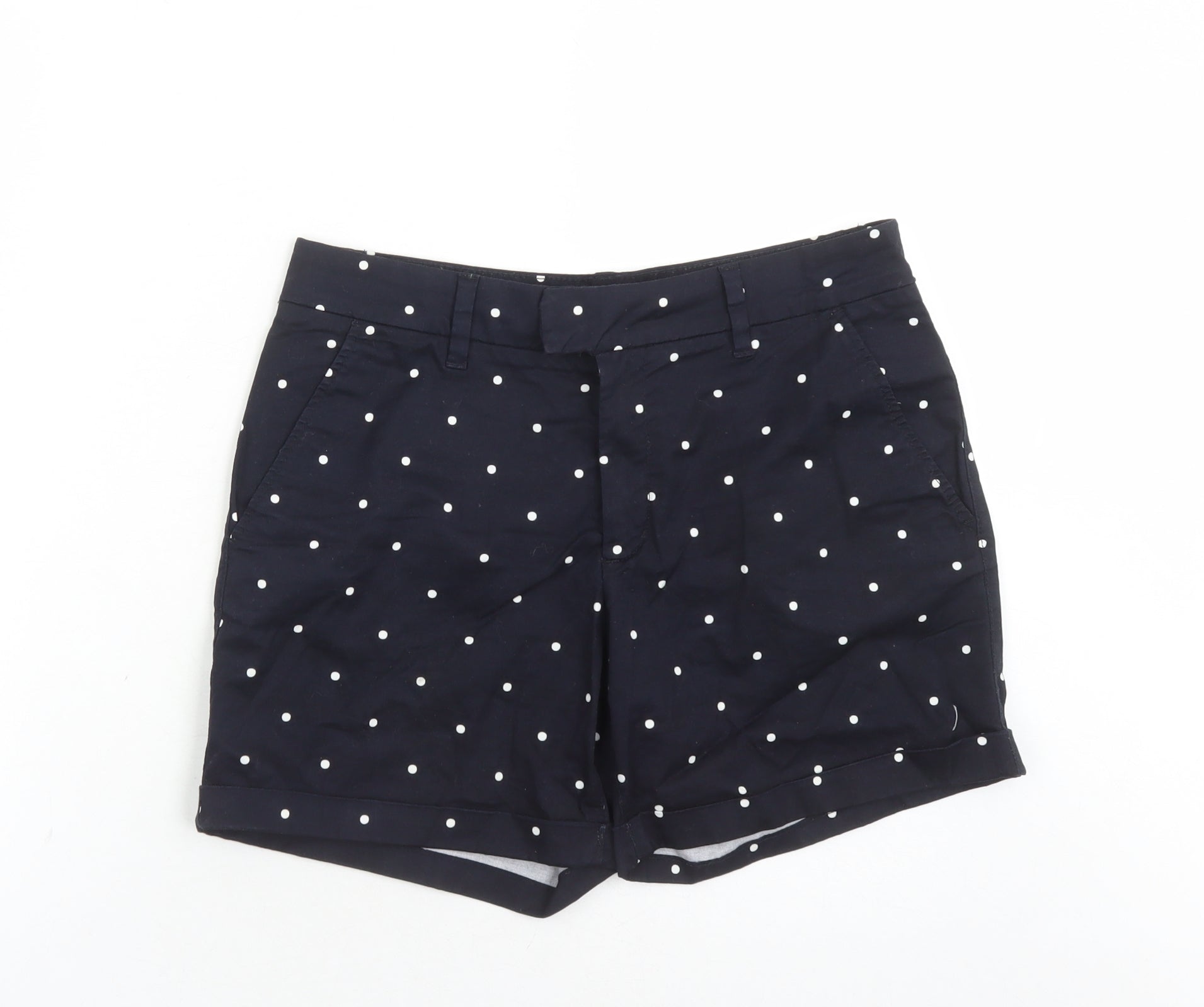 H&M Womens Blue Polka Dot Cotton Chino Shorts Size 8 L5 in Regular Zip - Pockets