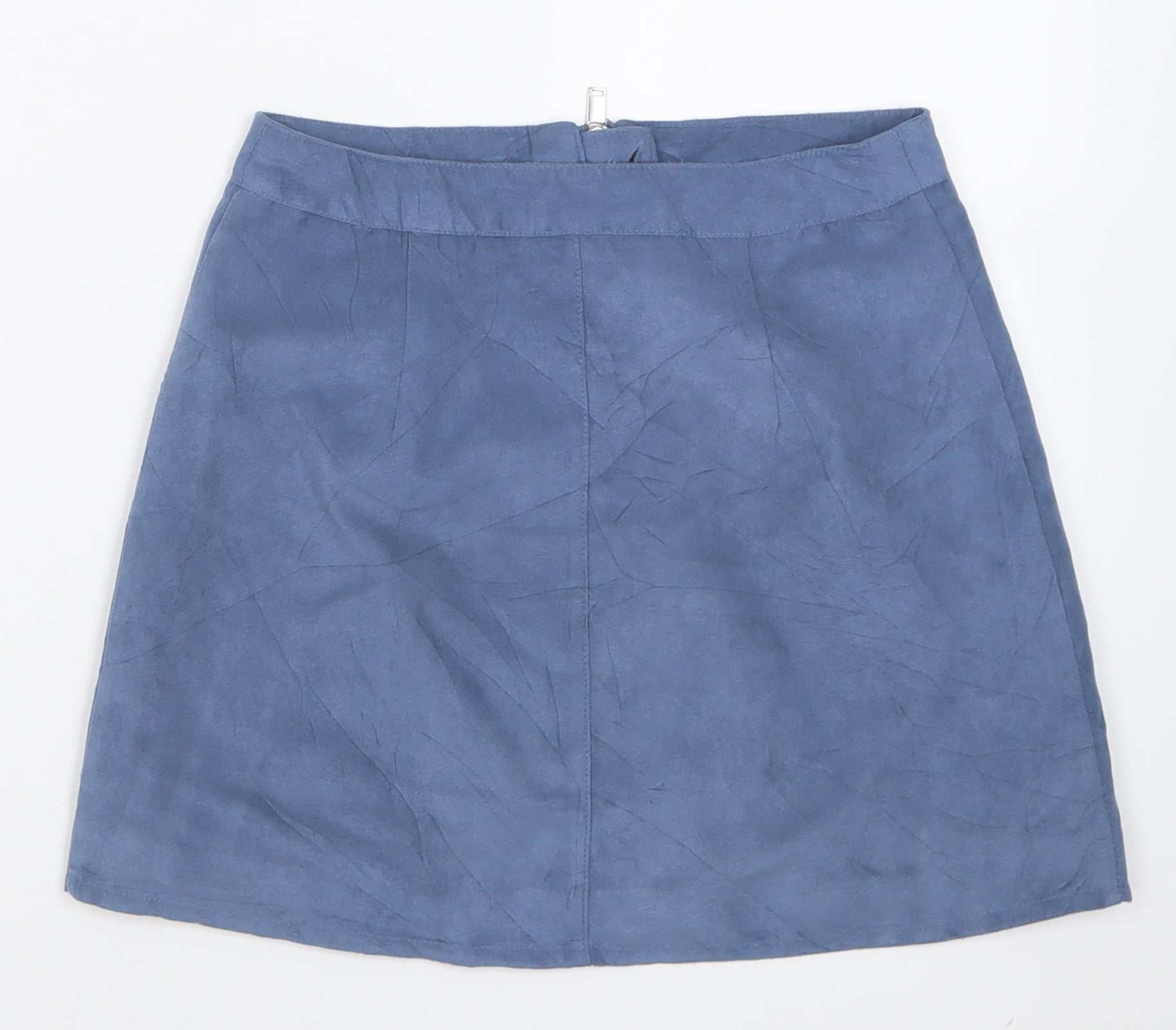 H&M Womens Blue Polyester A-Line Skirt Size 8 Zip