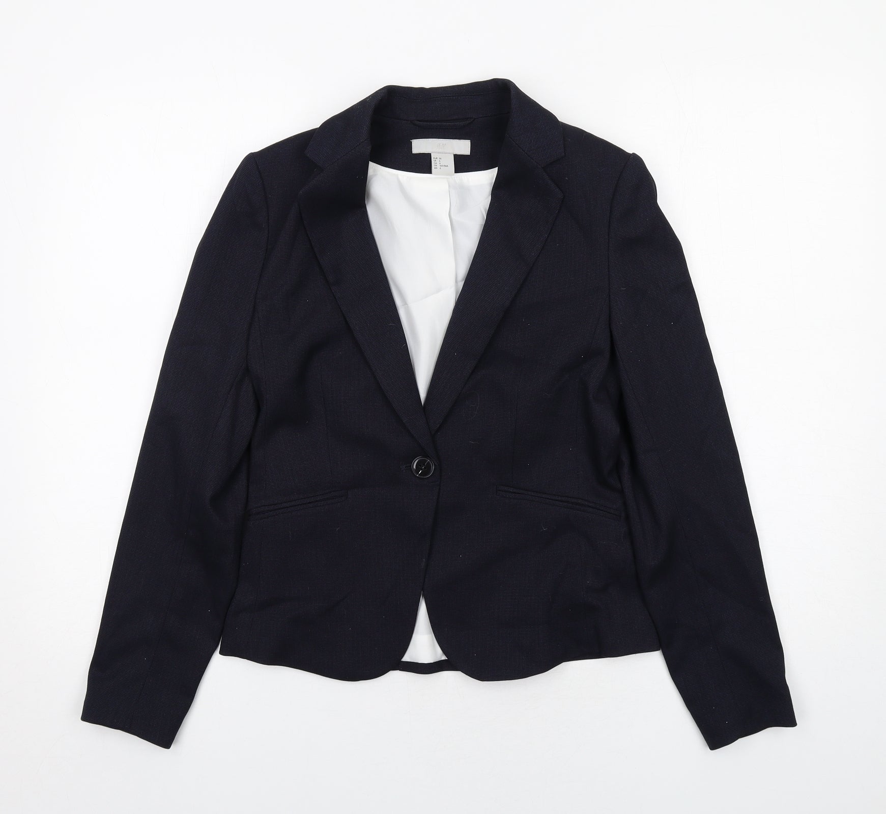 H&M Womens Blue Polyester Jacket Suit Jacket Size 8