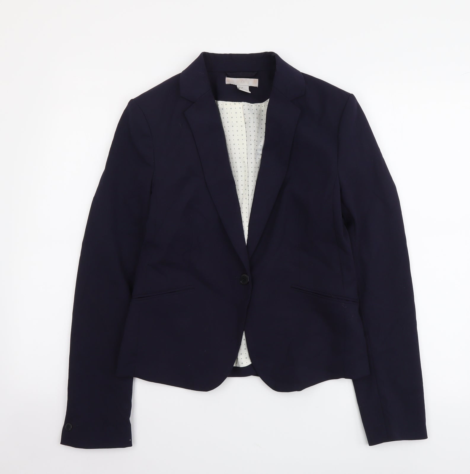 H&M Womens Blue Polyester Jacket Suit Jacket Size M