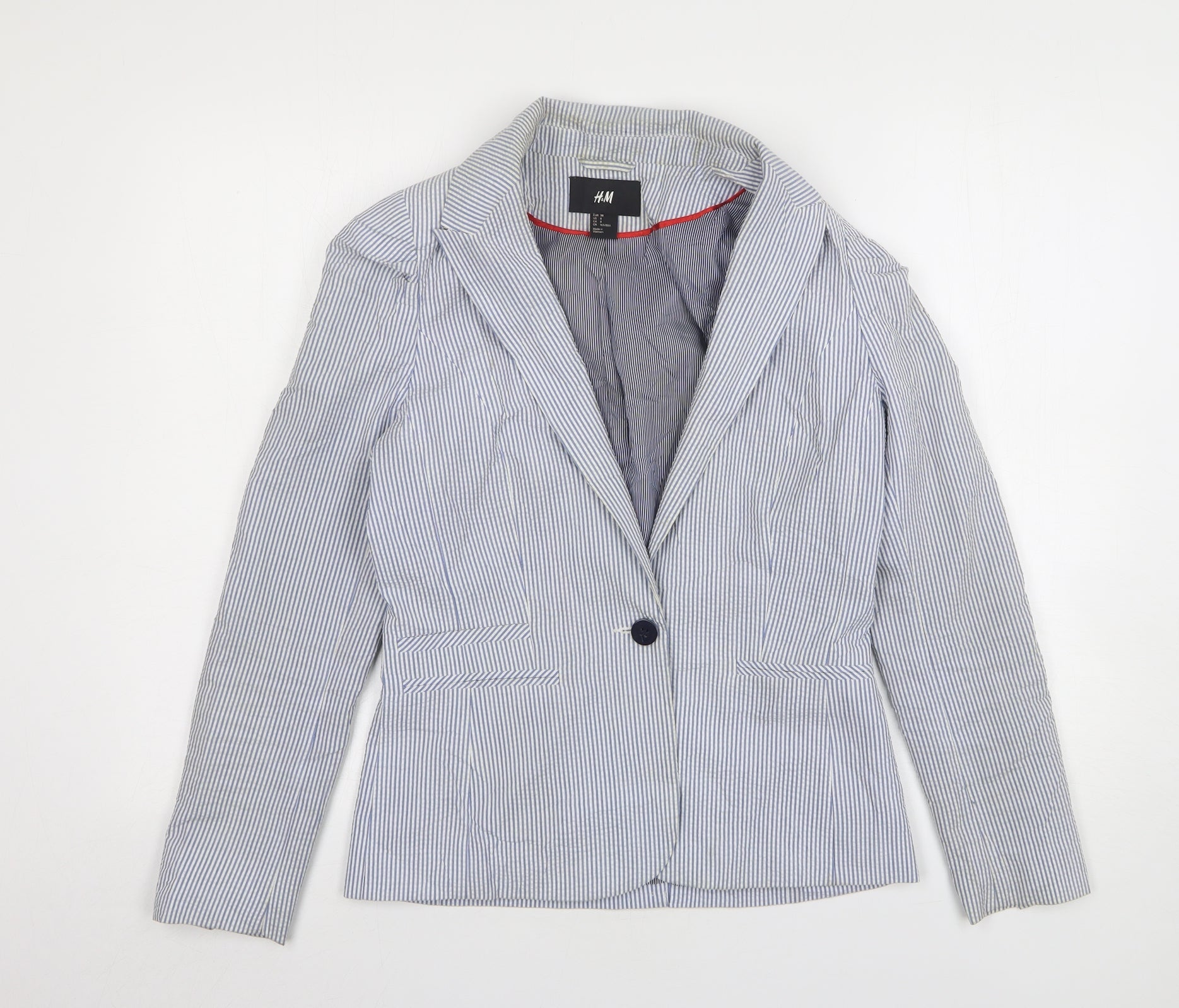 H&M Womens Blue Striped Polyester Jacket Suit Jacket Size 10