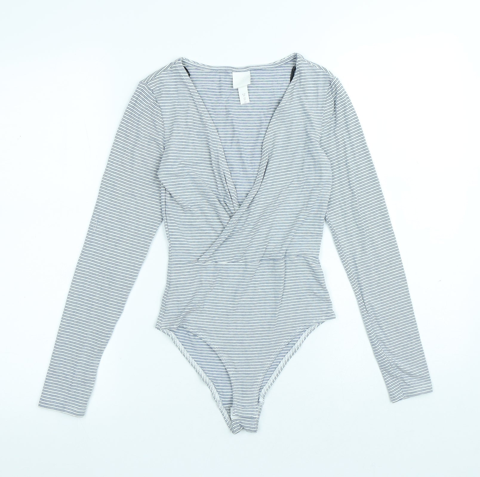 H&M Womens Blue Striped Viscose Bodysuit One-Piece Size XS Snap