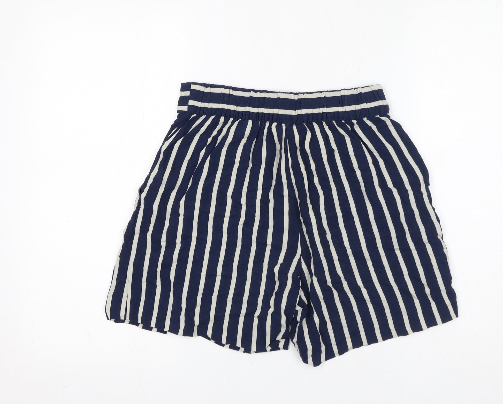 H&M Womens Blue Striped Viscose Culotte Shorts Size 8 Regular