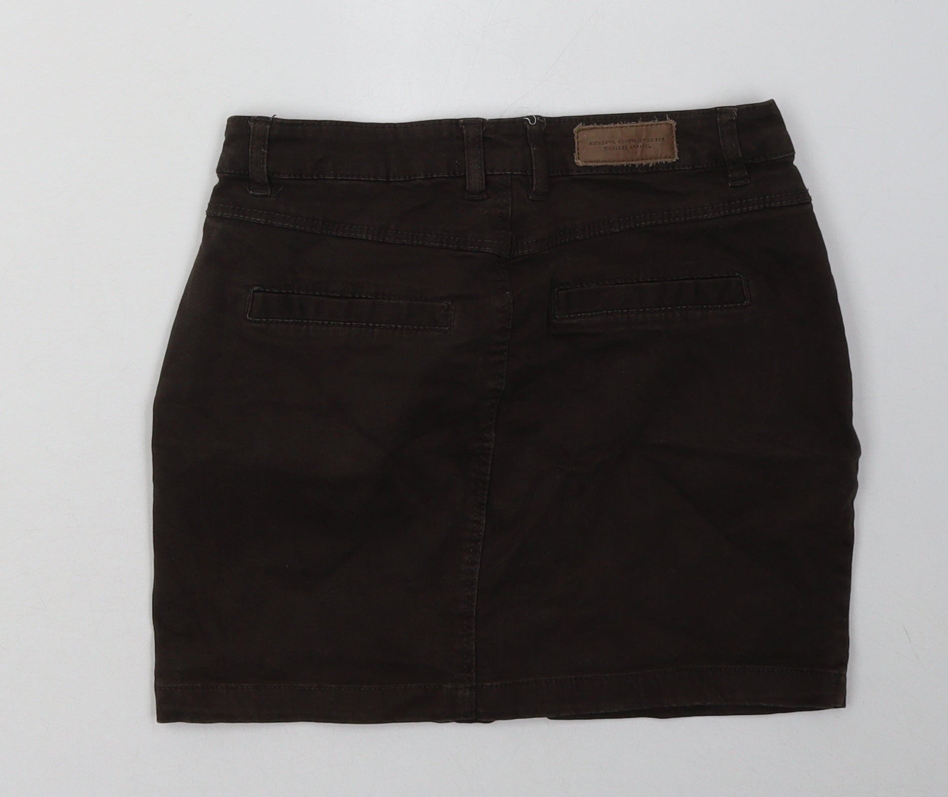 H&M Womens Brown Cotton A-Line Skirt Size 4 Button