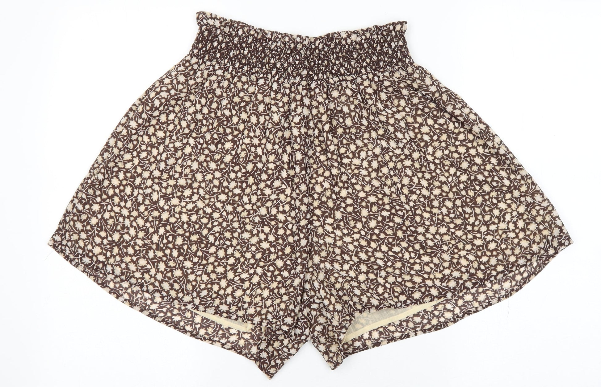 H&M Womens Brown Floral Polyester Paperbag Shorts Size M L4 in Regular Pull On
