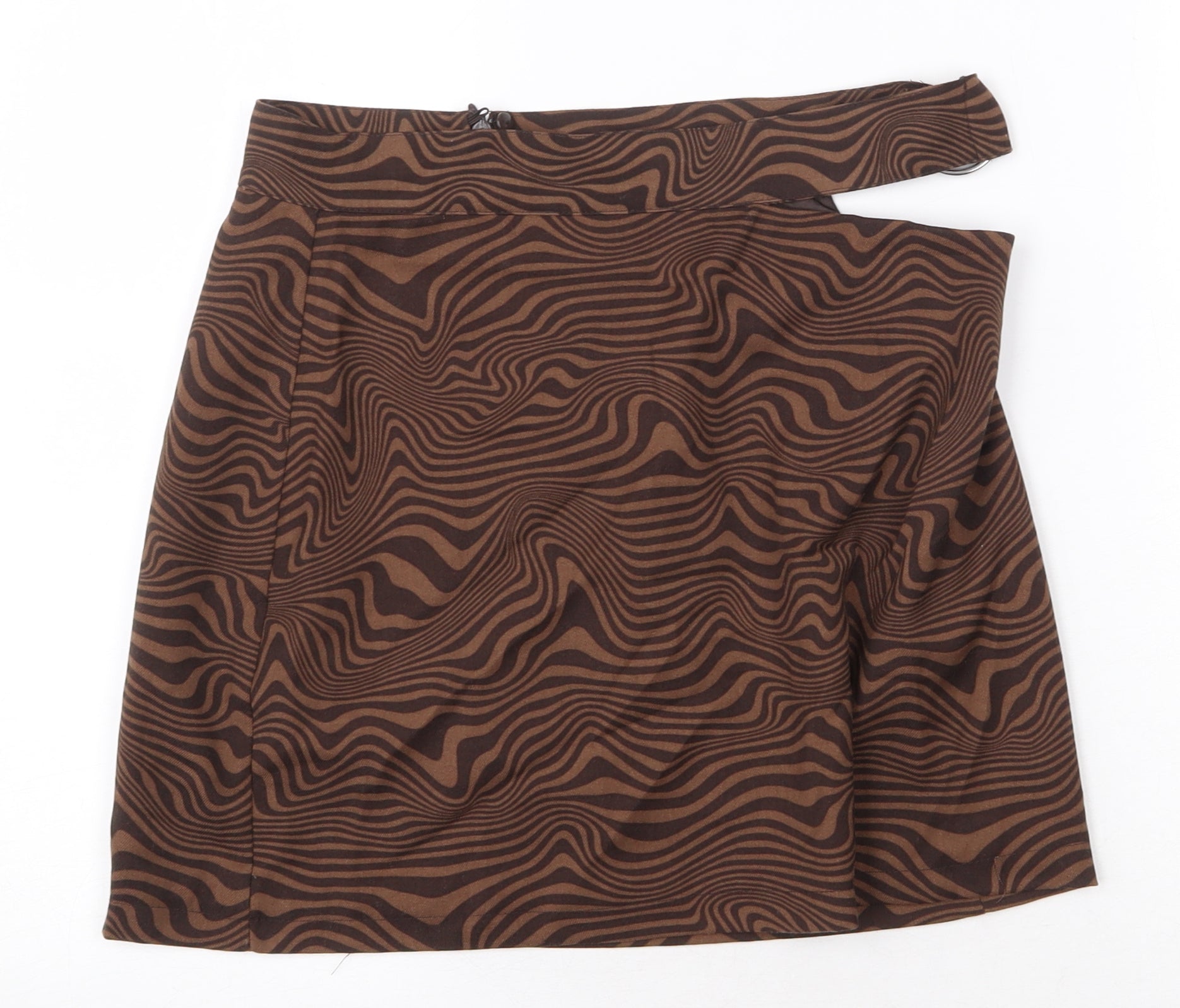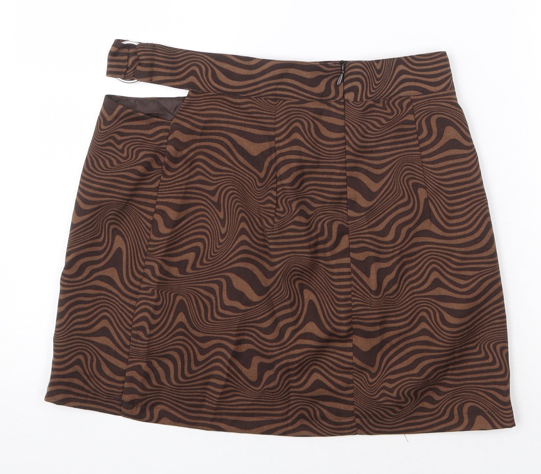 H&M Womens Brown Geometric Polyester Mini Skirt Size 10 Zip - Cut Out