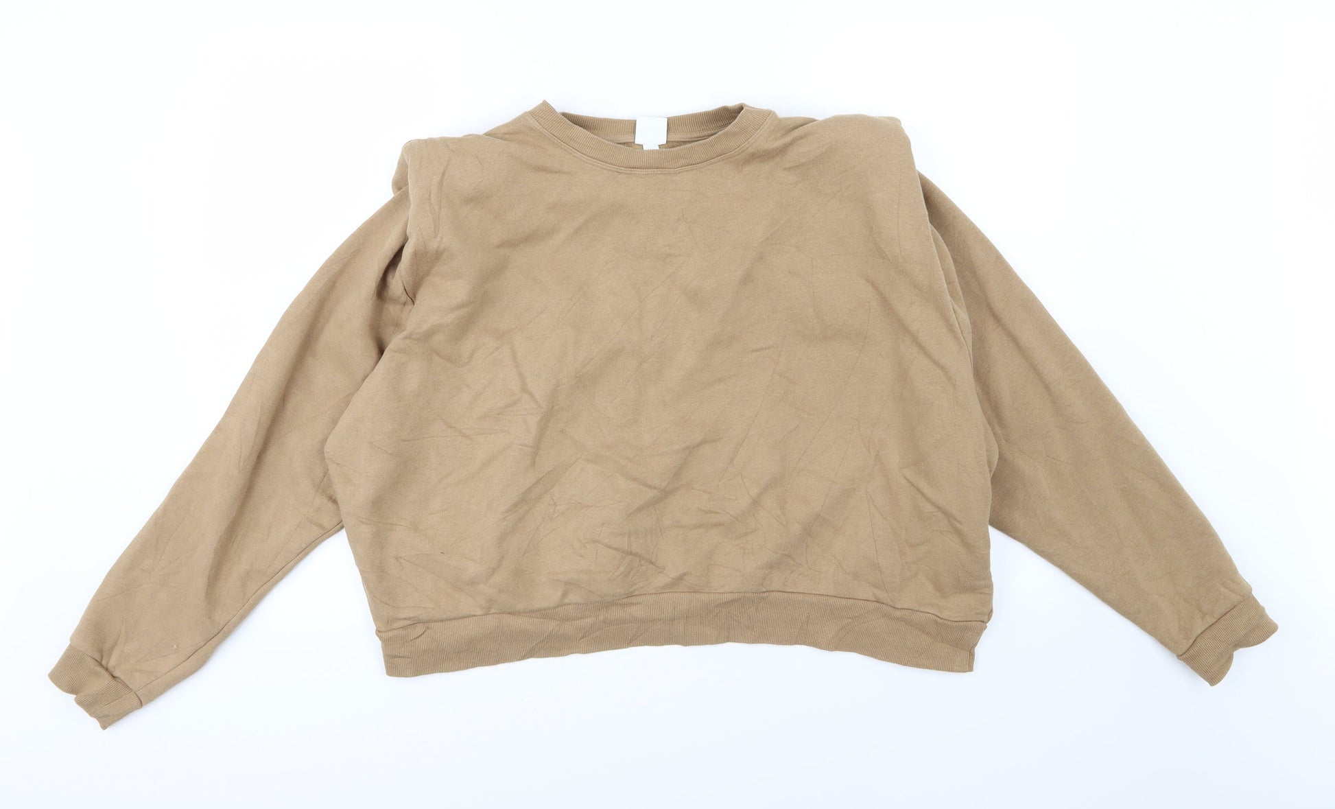 H&M Womens Brown Jersey Pullover Sweatshirt Size XL - Padded Shoulders