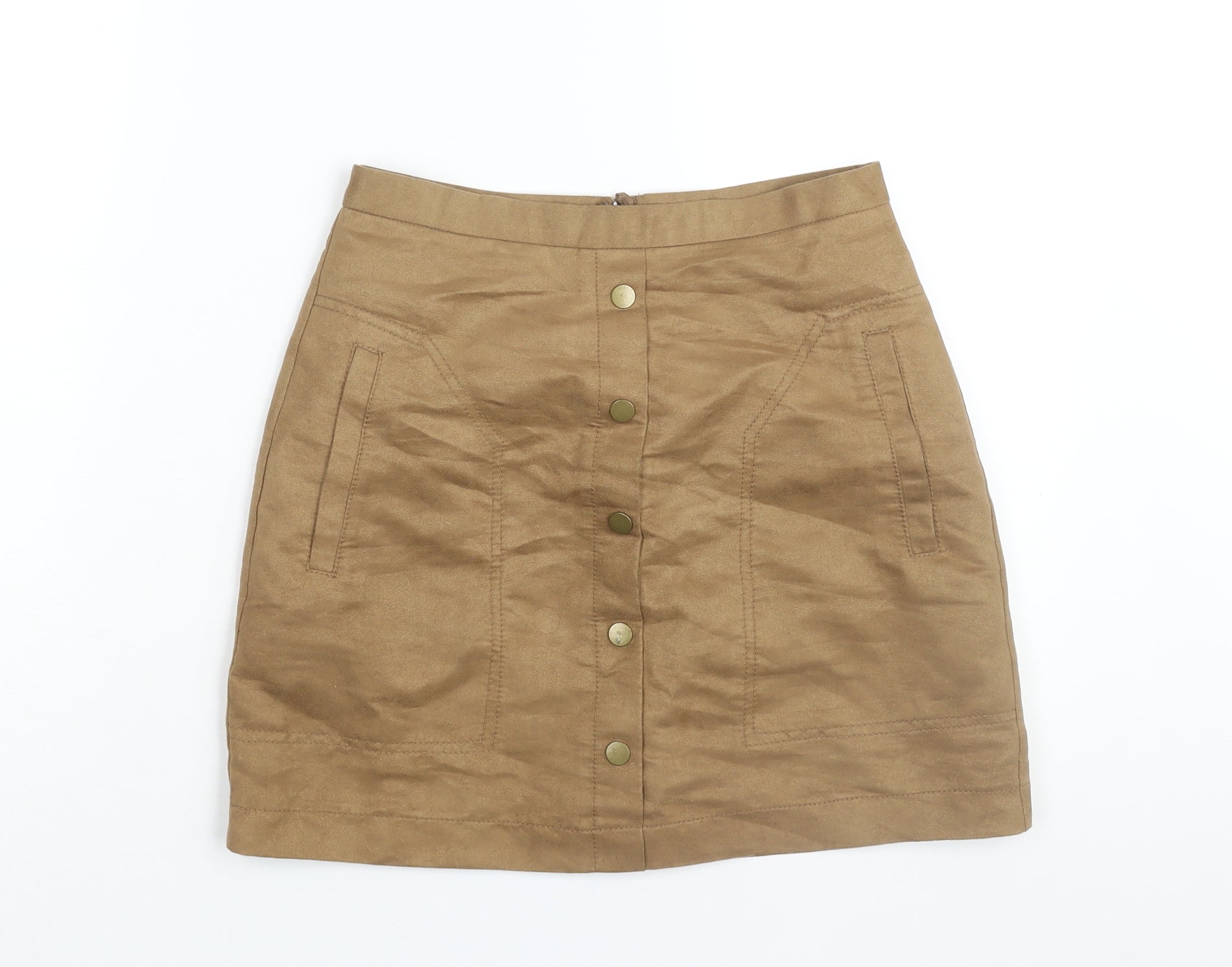 H&M Womens Brown Polyester A-Line Skirt Size 8 Zip