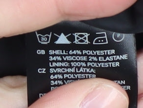 - Material Breakdown: 64% Polyester 34% Viscose 2% Elastane