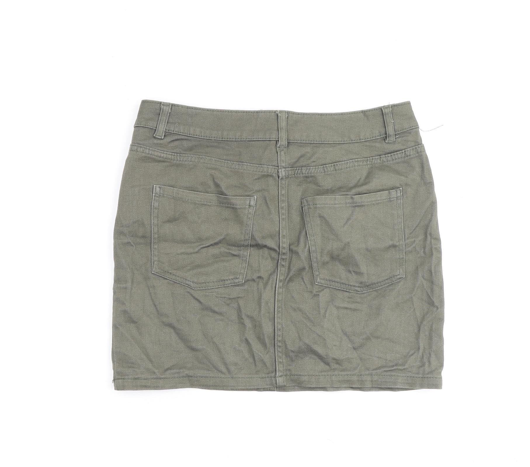 H&M Womens Green Cotton A-Line Skirt Size 8 Zip