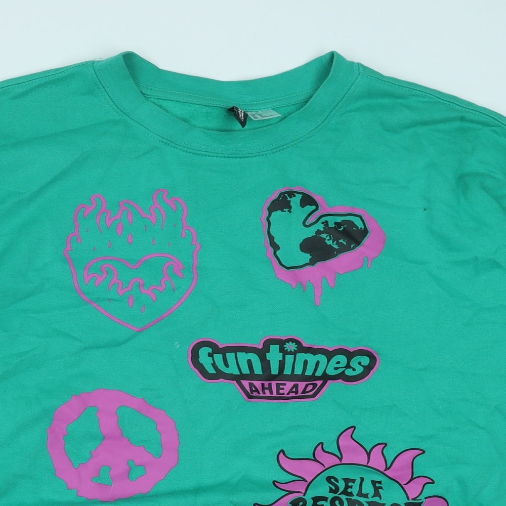 H&M Womens Green Cotton Pullover Sweatshirt Size XS Pullover - Fun Times Ahead
