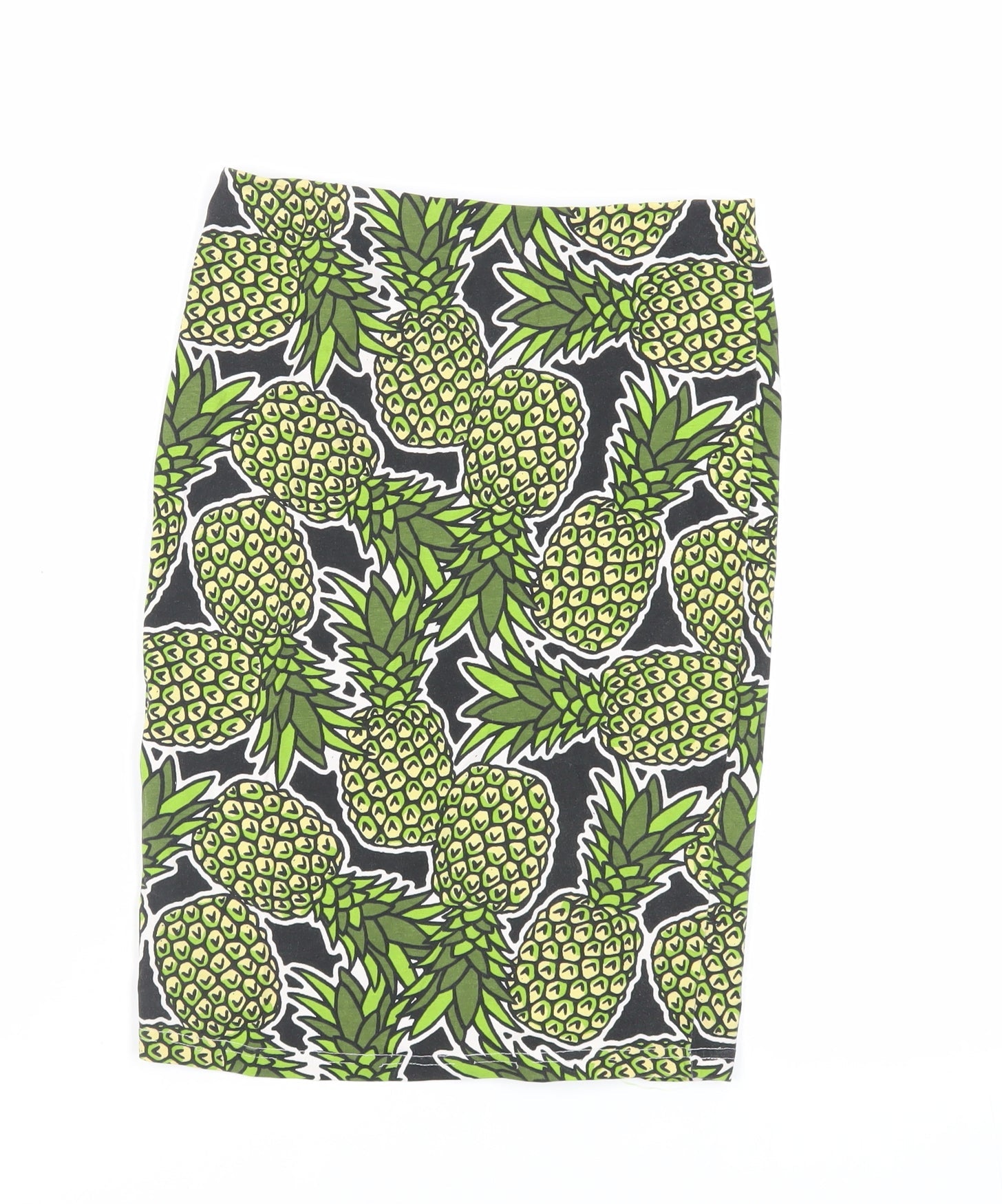 H&M Womens Green Geometric Cotton Straight & Pencil Skirt Size S - Pineapple Print