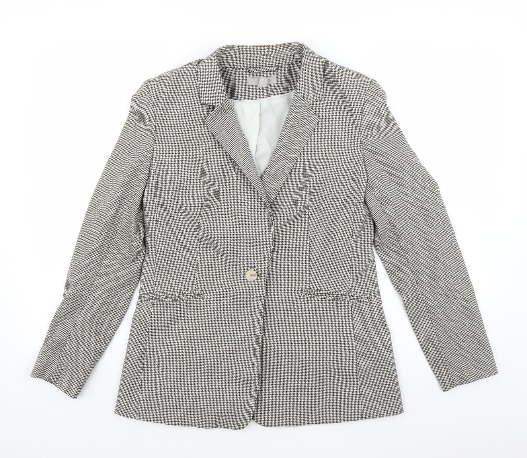 H&M Womens Green Houndstooth Jacket Blazer Size 12