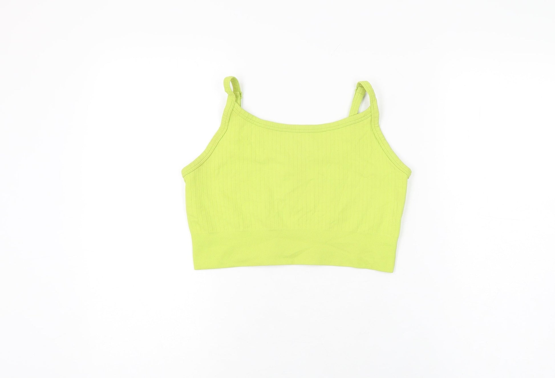 H&M Womens Green Polyamide Cropped T-Shirt Size L Scoop Neck Pullover