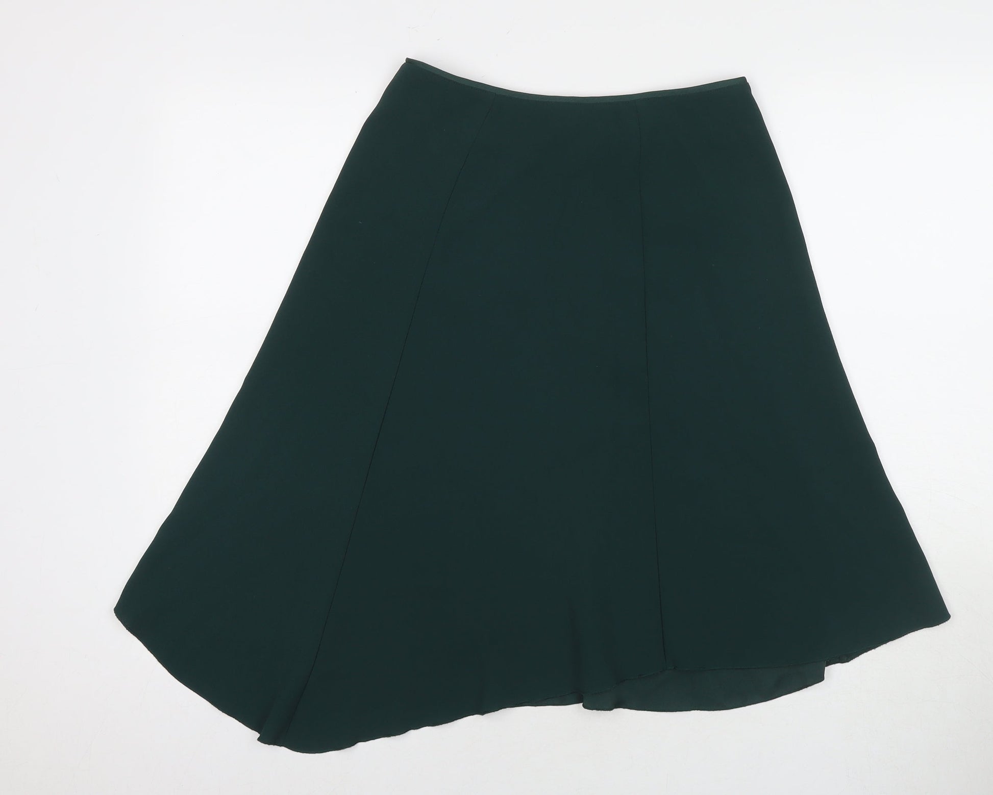H&M Womens Green Polyester A-Line Skirt Size 8 Zip - Asymmetric