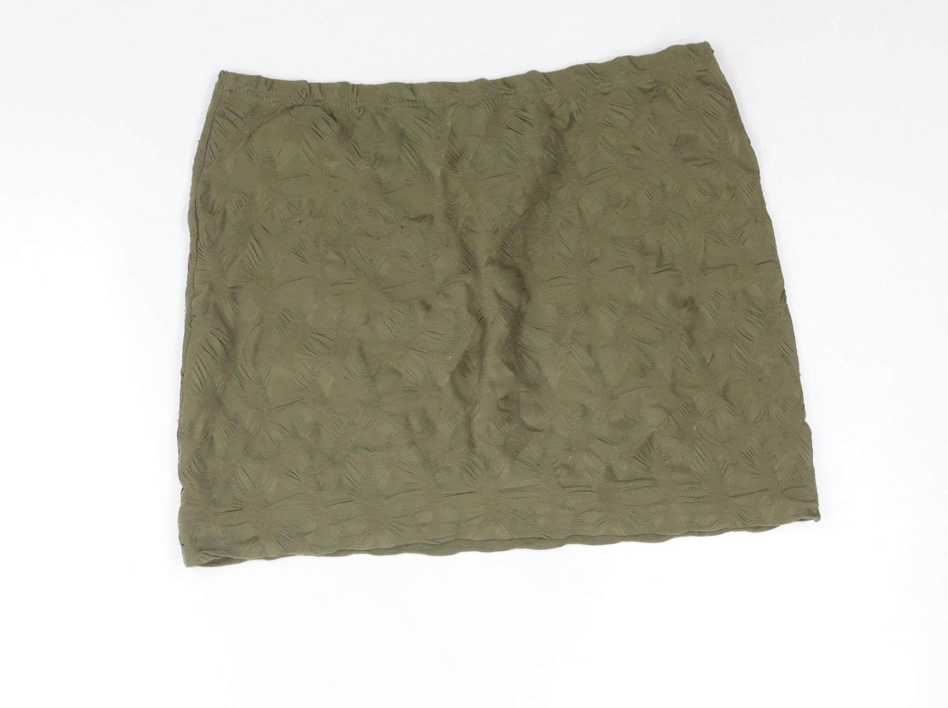 H&M Womens Green Polyester Mini Skirt Size M - Textured